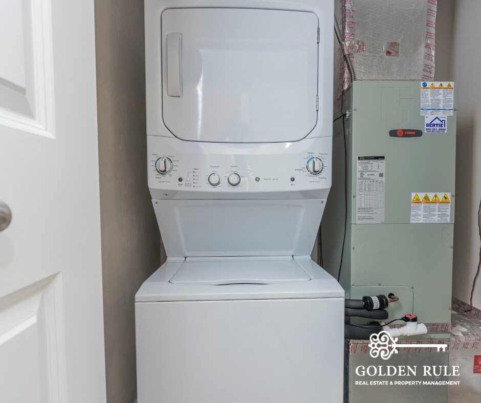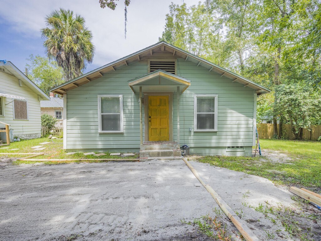 Discover this beautifully updated 2-bedroom, 1-bath home just minutes from vibrant downtown Gainesville. Fresh, modern flooring, neutral paint, and recessed lighting create a bright and inviting interior, while the spacious bedrooms offer plenty of comfort and flexibility. The kitchen features generous counter space, wood cabinets, and clean white appliances, and the home includes a convenient in-unit washer and dryer. Outside, enjoy a backyard surrounded by mature trees—perfect for relaxing or entertaining. With off-street parking, a charming front porch, and an unbeatable location close to dining, UF, hospitals, and nightlife, this move-in-ready home is a fantastic find! Grad students welcome. Pets welcome. (water bill split with front home)