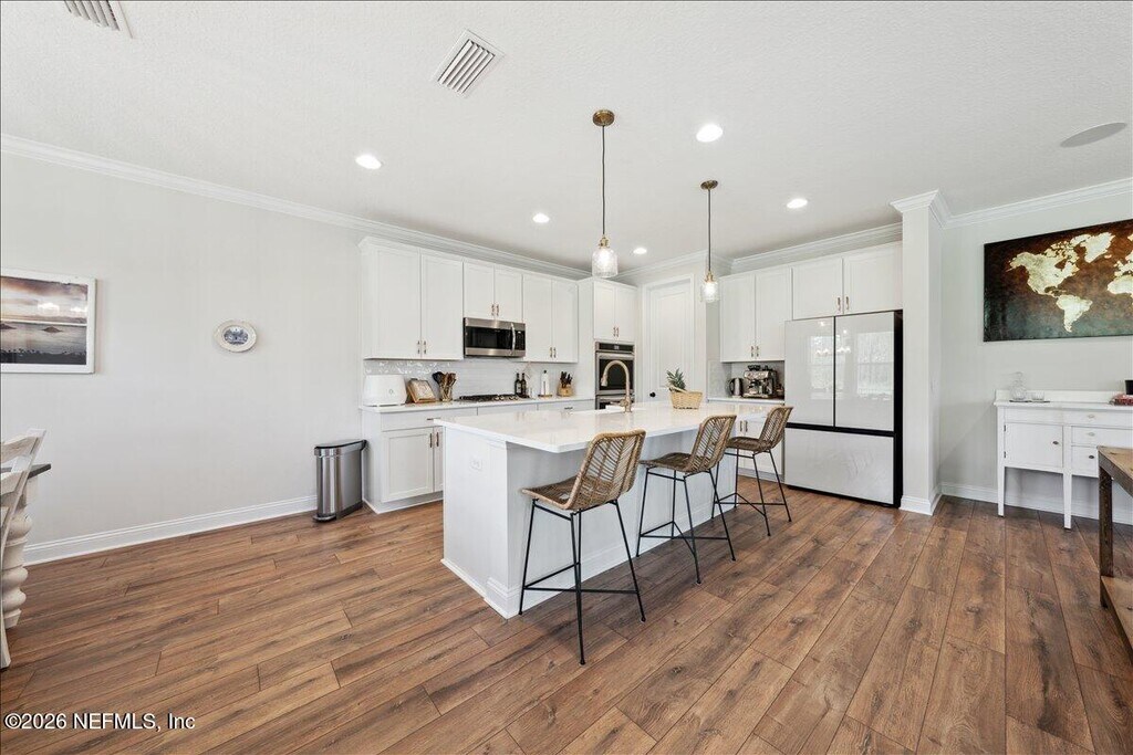 This stunning 4 bedroom,3 bathroom home sets the bar for modern living. Only 5 years old this home has been meticulously maintained and thoughtfully designed. The home is strategically positioned in a cul-de-sac,providing not only privacy but also breathtaking views of a serene pond and lush preserve,ensuring a picturesque backdrop to your everyday life. The covered patio and fenced-in yard offer a perfect location for family gatherings. Inside,the home has an inviting open floorplan and tasteful design touches throughout. Silverleaf has beautiful amenities and is close to shopping,dining and entertainment. Pets are welcomed,but breeds are restricted. This property comes with a washer and a dryer. MLS# 2131266