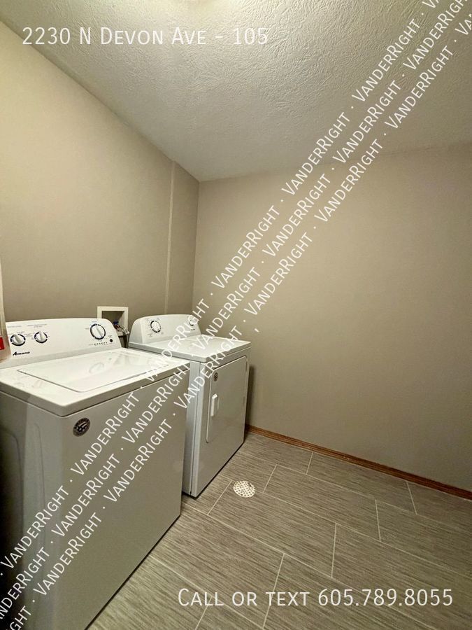 Check out this charming 2 bedroom 1 bathroom walk-out apartment on the edge of Tea! This apartment features updated flooring, open concept living room/kitchen, two spacious bedrooms, full bathroom, and laundry right inside the apartment. The apartment has central air conditioning and heating, all appliances (including the washer and dryer previously noted) provided, and 1 indoor garage parking space included in the rent. The building has an added element of safety, as it is a secured building, so a key or access code is required to enter the hallways even. Lawn Care, Snow Removal and Trash are included in the rent. Pet friendly with $300 pet deposit and $45/month pet rent. Professionally managed by VanderRight. Lawn Care Snow Removal Trash