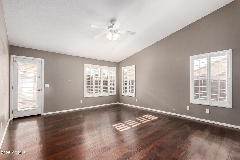 Michael BohlmanCharming one-level home with RV gate & 3-car garage! Come inside to see formal living & dining rooms, vaulted ceilings, plantation shutters, & soothing paint throughout. Continue into the spacious family room, including a gas fireplace. Cook delicious meals in the equipped kitchen boasting a walk-in pantry, Corian counters, an island w/breakfast bar, built-in appliances, plenty of cabinets, & breakfast room w/sunny bay window. Retreat to the owner's suite to find so much space for your furniture, backyard access, & a bathroom with a separate tub/shower & mirrored door walk-in closet. Private backyard boasting green grass & a covered patio for al fresco dining & a BBQ grill area with an outdoor bar. Great Rental