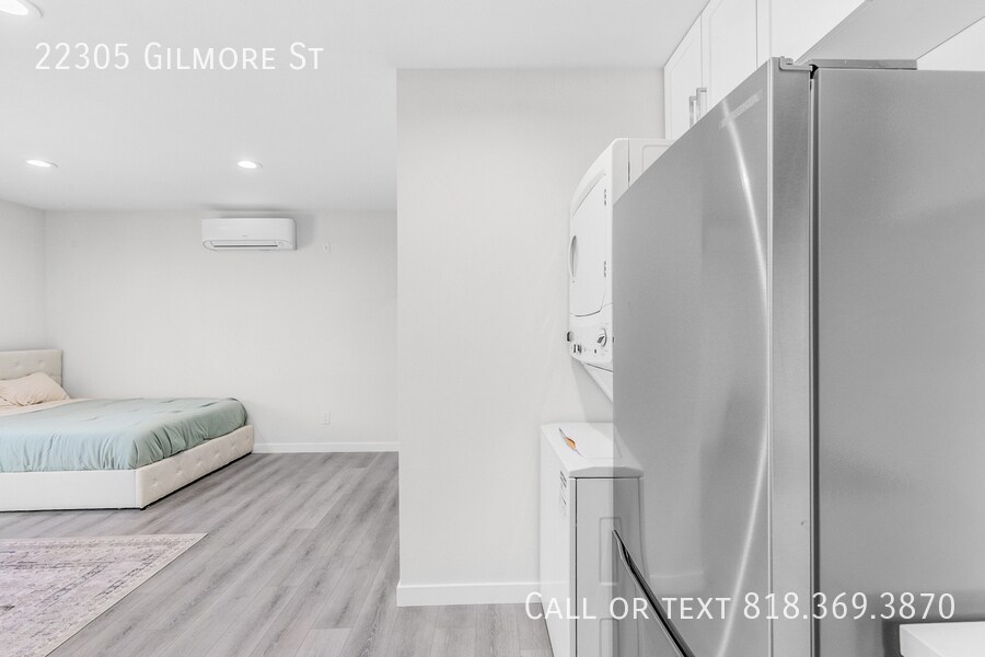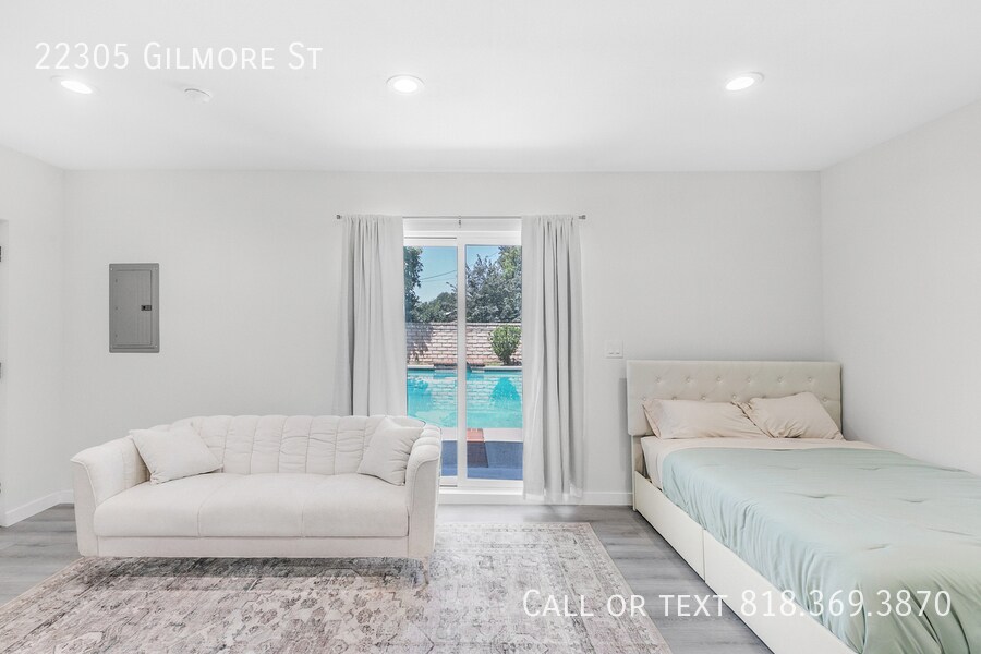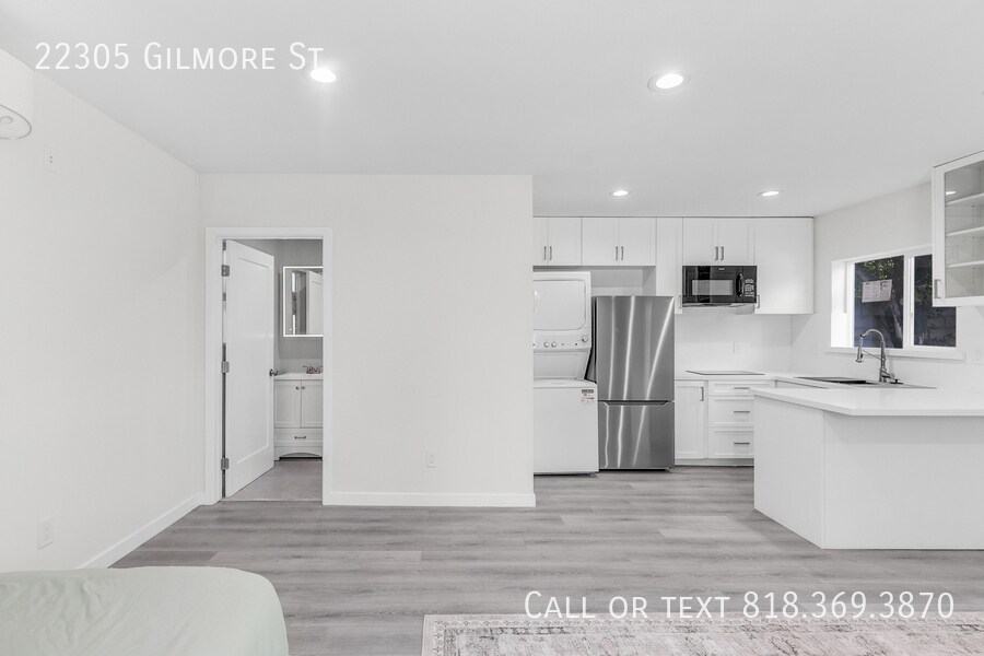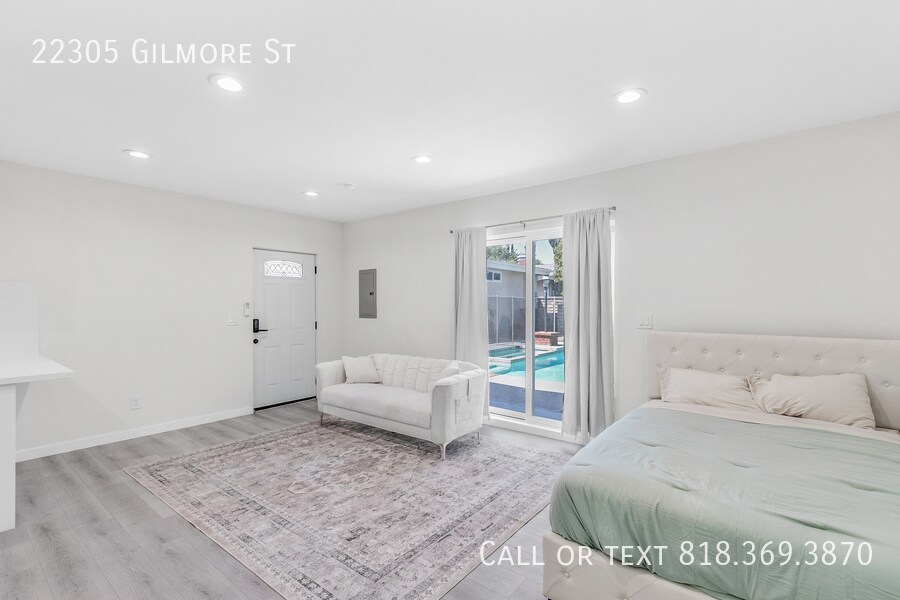 Welcome to 22305 Gilmore Street, a cozy studio back house ADU nestled in the peaceful neighborhood of Woodland Hills. This almost 400 sq ft studio offers flexibility with the option to come furnished or unfurnished, allowing you to make it truly your own. Enjoy the privacy of a separate entrance and your own front outdoor space. The studio comes equipped with all the essentials: a small stovetop, fridge, in-unit washer and dryer, built-in microwave, and a mini-split AC unit to keep you comfortable year-round. The bathroom features a spacious walk-in shower and a stylish light-up LED mirror. Your rent includes water, sewage, trash, and gas—making it easy to manage your monthly expenses. Don't miss out on this great opportunity to live in a desirable area with all the conveniences you need. Contact us today to schedule a viewing!