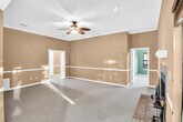 3Bed/2Bath home. The foyer has a coat closet and access to the two secondary bedrooms - both generous in size. Your great room is straight ahead and accented by the impressive wood burning fireplace. It also offers high ceilings with crown molding, chair rail and a mantle over the fireplace. This home has a true split bedroom plan with the master suite at the back of the house. Again high ceilings in the bedroom and master bath give a spacious feel to this area. The master bath has a large walk in closet, double vanity and tub/shower. The kitchen is chef friendly with plenty of counter space and More...