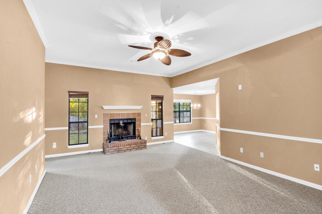 3 Bed/2 Bath home has features of high ceilings, crown molding and chair rail accents. Wood burning fireplace. Kitchen has ample counter space along w/ Brand-New stainless-steel appliances. The primary suite is a the back of the home. The master bathroom includes a walk-in closet, double vanity and tub/shower combo. Two secondary dedrooms are located at the front of th home w/ full bathroom. NO HOA!! Home has a two-car garage. Washer and dryer hookups, fully privacy fenced backyard. Pets upon approval