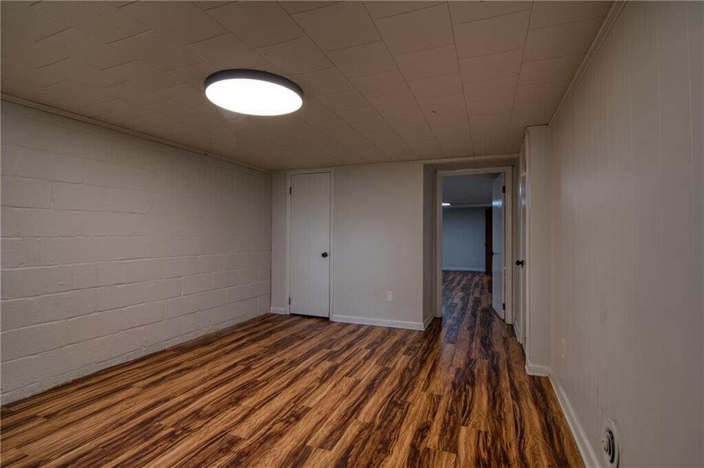 Cute brick ranch with three total bedrooms and one bath. Kitchen with newer appliances. Hardwood floors upstairs and LVT in the finished portion of the basement. There is a detached shop/storage building in back with electricity. There is plenty of paved driveway parking on the side and rear of the home. Owner is a licensed GA Real Estate Agent.