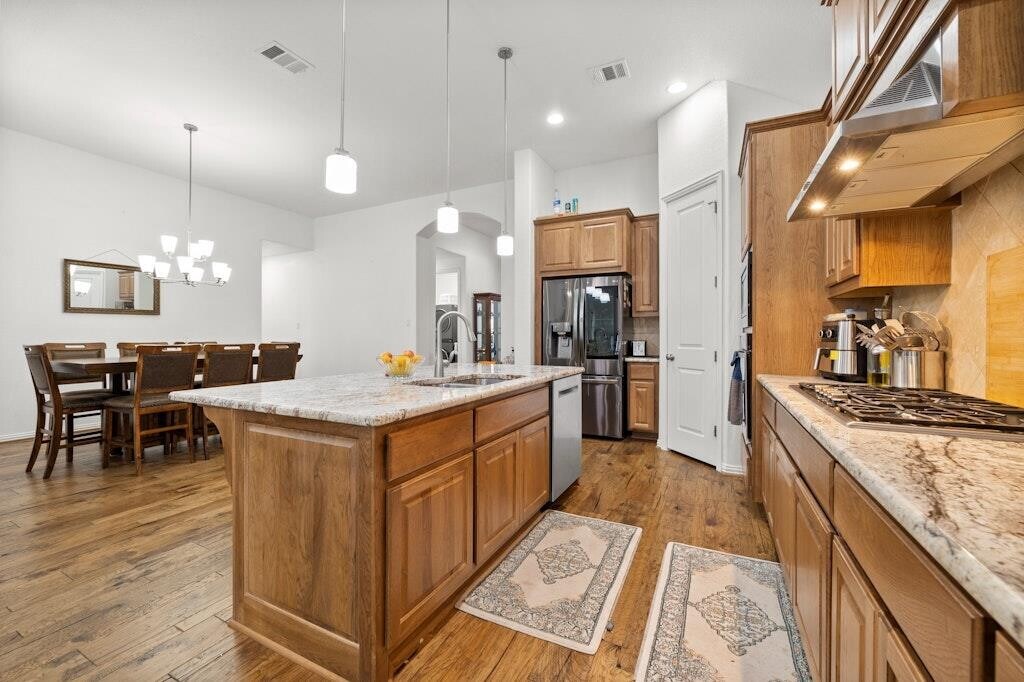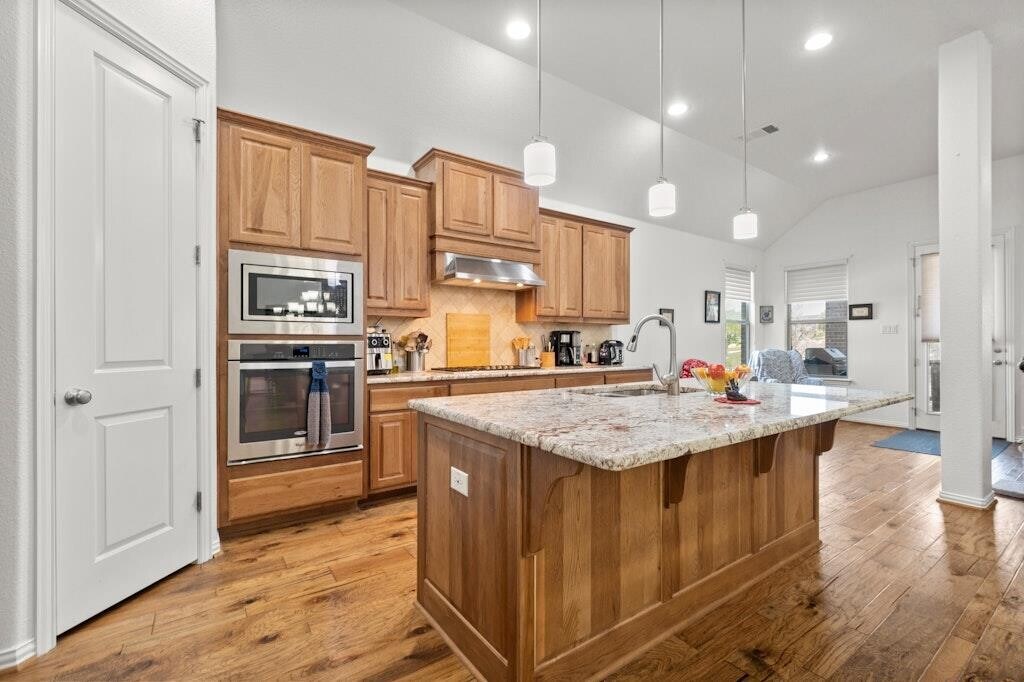 Quick move in Special November of 2025 is Free! This stunning 5-bedroom, 3-bathroom home with a bonus room offers 2,894 square feet of thoughtfully designed living space in the desirable Tessera on Lake Travis community. The open-concept design features a chef’s kitchen equipped with stainless steel appliances, a gas cooktop, and granite countertops, seamlessly connecting to the family and dining areas, creating an ideal space for entertaining. The private primary suite offers a relaxing retreat with a spa-like ensuite bath, complete with dual vanities, a soaking tub, and a separate shower. The secondary bedrooms are strategically placed for privacy, and the versatile fifth bedroom can be used as a study or flex space to suit your needs. The bonus entertainment room provides additional space for hobbies, games, or media. The outdoor living area includes a covered patio with serene views of the green space behind the property, perfect for unwinding or hosting guests. A three-car tandem garage provides ample room for vehicles and storage. Located in the vibrant Tessera on Lake Travis community, this home offers walking access to Lake Travis, a private boat ramp, and scenic trails. With its modern design, flexible spaces, and tranquil surroundings, this property is the perfect place to call home owners to provide lawn service with lease.
