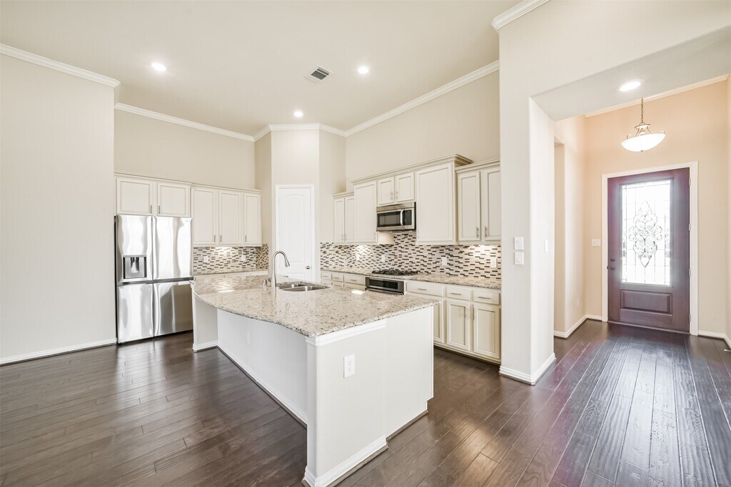Executive elegance in this immaculately maintained home! Fresh paint throughout. Gorgeous hand scraped hardwoods in main living area. New carpet in the bedrooms. 2 Primary bedrooms! 3 FULL baths total! Soaring ceilings,loads of natural light,crown molding. Kitchen overlooks living and dining. Stainless appliances,42" cabinets and fridge included. Living features gas log fireplace. Primary bedroom(s) flank the main living and are nestled to the back of the home. Easy access to 99,the Woodlands and 249. MLS# 76726829