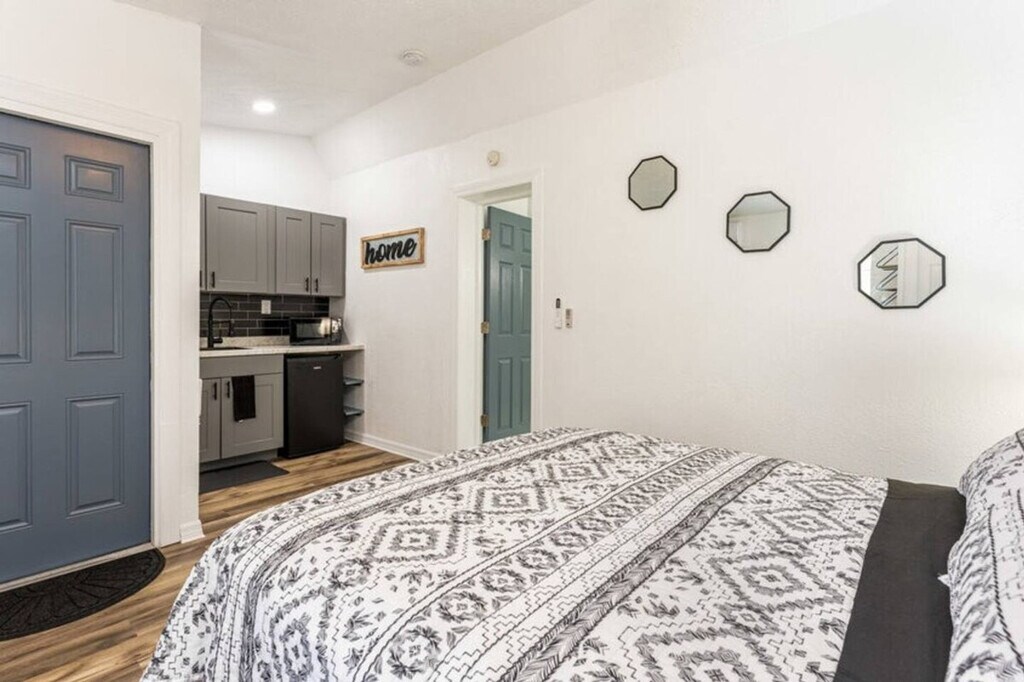 Save 20% on this private 1-bedroom retreat near Disney and Universal! Feel at home in this cozy, pet-friendly space with a private entrance, fast Wi-Fi, and full amenities. Nestled in a quiet triplex just minutes from Orlando’s top attractions, this apartment is perfect for couples, small families, or remote work. Step into this charming studio, designed for comfort and practicality. The open layout includes a dining area and a fully equipped kitchenette with a two-burner portable stove and mini-fridge, perfect for simple meals. Stay comfortable year-round with a mini-split air conditioning and heating unit. Enjoy a clean and modern full bathroom equipped with all essentials for a refreshing shower. Pets are welcome with a fee of $60 per pet for small dogs. The property allows a maximum of 2 pets, and they must be house-trained and non-aggressive. A crate is required if left alone indoors, and a leash is required when outside. Please bring your pet’s bedding and keep them off the furniture. Clean up after your pets both indoors and outdoors. Shared parking is available for up to two compact cars per unit. Just minutes from Universal Studios, Disney, shopping centers, and downtown Orlando, this location offers a blend of tranquility and convenience. Whether you're looking for shopping, dining, or easy access to Orlando’s main attractions, this neighborhood has it all. Nearby highways provide smooth connectivity, and Orlando International Airport is just 15 minutes away. There are other units on the property, so some noise is possible. Quiet hours are from 8:00 p.m. to 8:00 a.m. Check-in is at 4:00 PM and check-out is at 10:00 AM. Late check-out may result in additional fees. Smoking inside the property is strictly prohibited and will result in an automatic complaint. The pool is not heated, and water temperature varies depending on the weather, season, and time of day. A security camera is located outside by the entrance for safety purposes. The apartment is remote work-friendly with fast Wi-Fi, making it ideal for those who need to work from home. [SI]