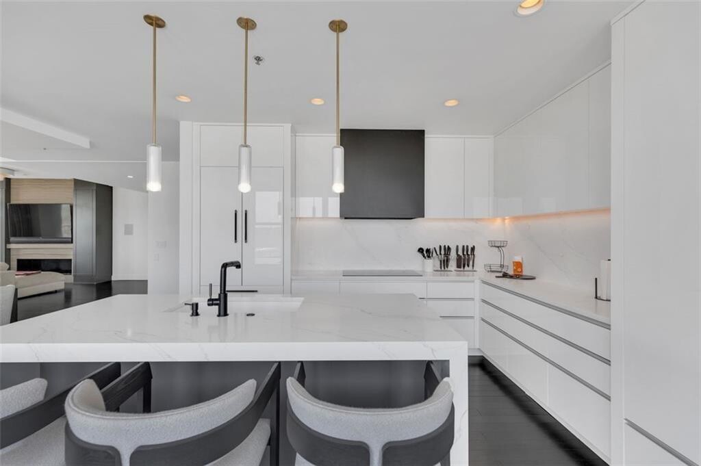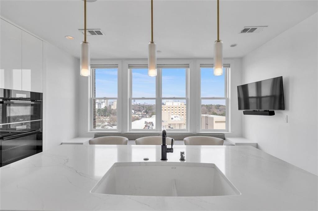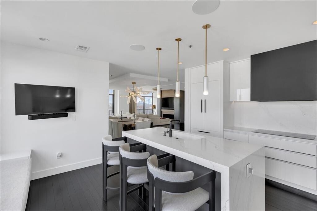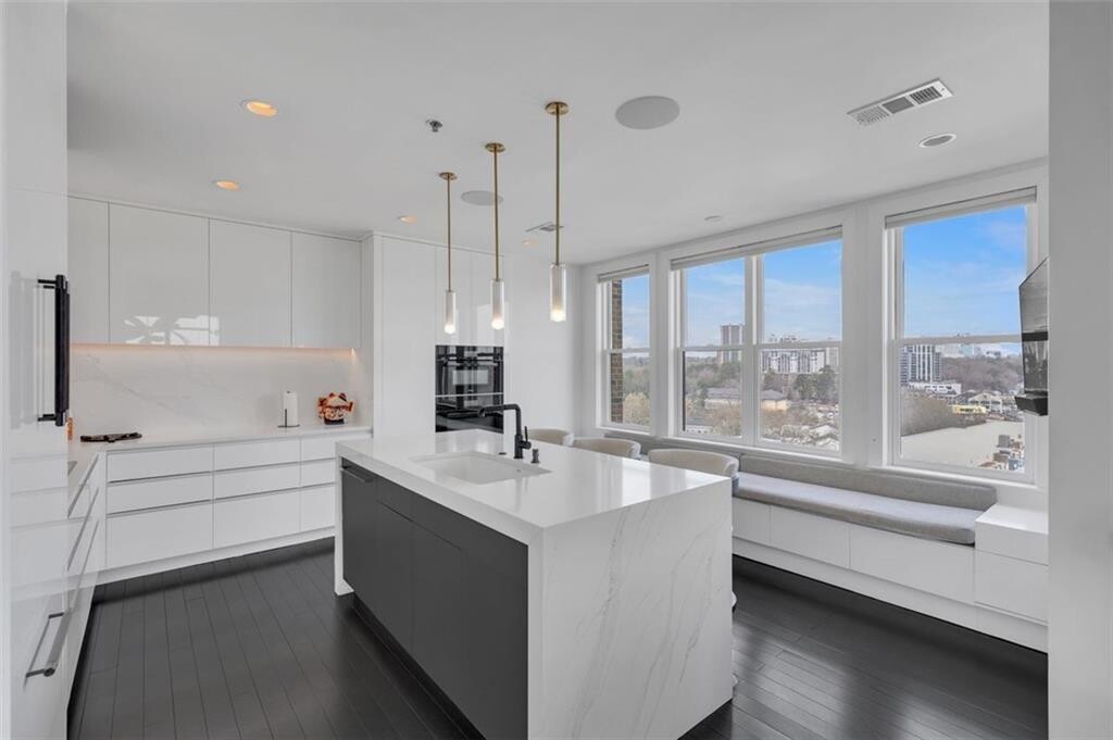 Nestled above the stunning Atlanta skyline,this expansive Astoria condominium epitomizes luxury living. Meticulously designed by the world-renowned Cooper Carry Architects,this residence is a true masterpiece of opulence in Buckhead,Atlanta. This rare,quiet end unit faces East toward Peachtree Hills,offering protected views free from future development. Enjoy treetop vistas,Peachtree Creek,and two iconic skylines: Buckhead and Midtown/Downtown. Boasting spacious,open interiors with soaring 10-foot ceilings,The Astoria at The Aramore seamlessly combines the finest materials—brick,stone,and glass—creating a timeless and enduring exterior. With only 70 residences in total,The Astoria offers exclusivity,with just six homes on the 8th floor. This McKinley corner end unit,one of the few available,spans the entire length of the North facade and the rear,providing unobstructed,panoramic views from all three sides. The unit includes three expansive terraces totaling 523 additional square feet,including one that gracefully wraps around,perfect for outdoor living. The residence is bathed in natural light thanks to its floor-to-ceiling windows and doors,blending the indoor and outdoor spaces effortlessly. The panoramic views showcase the glamour of Buckhead to the north,the allure of Midtown to the south,and the lush green canopy of Peachtree Hills framing it all. Few homes offer such iconic vistas of the Atlanta skyline. Completely renovated,this home combines sophistication with cutting-edge technology. Designed by Michael Habachy,the unit spans 3,167 square feet. The private primary suite,located on the east side of the unit,offers a tranquil retreat,while the west side features a second primary suite,a guest bedroom,and an office with views of Peachtree Road and Buckhead. The interior exudes modern elegance with sleek finishes,including upgraded fixtures,doors,and hardware. The home is fully equipped with Control4 home automation,allowing you to control lighting,music,heating/cooling,and security. All blinds and drapes are motorized for convenience,and the private office has been redesigned with Porcelanosa cabinetry for a sophisticated touch. For the culinary enthusiast,the kitchen is a dream. It features honed white stone counters and backsplash,custom-designed Blum cabinetry with integrated lighting,and premium Miele,Thermador,and SubZero appliances. The kitchen also includes island seating and built-in seating with storage running the length of the windows. The luxurious spa-inspired bathrooms offer ultimate relaxation,with handcrafted floating vanities,heated towel racks,heated floors,an oversized soaking tub with designer fixtures,a rain-steam shower with Steam Mist technology,and a separate water closet. Both walk-in closets are custom-designed by Porcelanosa. Residents of The Astoria enjoy an array of exclusive amenities,including a pool and separate spa with an outdoor fireplace,a covered grilling area,a wellness center,permanent green spaces,a pet walking area,24-hour concierge service,and ample guest parking. This unit includes three secure,gated parking spaces. Located just moments from the BeltLine,parks,shopping,and renowned restaurants,this residence offers the perfect blend of luxury and convenience. Walk to the finest shops and dining in the neighborhood,and experience the pinnacle of Atlanta luxury living at The Astoria.