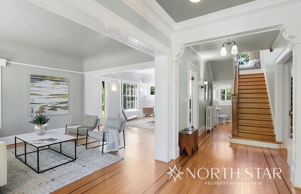 This is the Moses and Ida Kline House built in 1908. This property has been placed on the National Register of Historic Places by the United States Department of the Interior National Park Service. Colonial Revival meets Craftsman in this masterfully constructed home built by architect Emil Schacht. The Kline House boasts many original details including corbelled rafters, spacious sunny porches, built in window benches, box-beam ceilings and beautiful nailed oak floors with walnut inlay. All accompanied by a large flat yard with easy indoor/outdoor access. You will appreciate the rarity and charm of this magnificent Portland classic. Extensive lush gardens and beautiful rose bushes, landscaping is included. See for yourself! Check out the virtual video here: Highly rated schools 9/10 Ainsworth Elementary School Grades: K-5 Distance: 0.2 mi 9/10 West Sylvan Middle School Grades: 6-8 Distance: 4 mi 8/10 Lincoln High School Grades: 9-12 Distance: 0.7 mi Smart devices may be active and in use for this property. Please see our website for information on application requirements. Click "Apply Now" for screening criteria. We will begin processing applications within 72 hours of 5/23/2023. This dwelling unit does not qualify as a 'Type A Unit' (accessible unit) per Oregon structural building code and ICC A117.1. Please refer to our website listing for an accurate reflection of amenities reported by the owner: An approved application does not constitute a contract or lease agreement with the management company or homeowner.