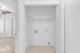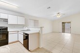 Comfortable 3Bdm 2Ba Home in Sun City! Spacious open-concept layout showcases neutral tile flooring, a ceiling fan for added comfort, and sliding glass access to the backyard for effortless indoor-outdoor living. The open flow leads into a well-appointed kitchen with generous cabinetry, expansive counters, and a functional breakfast bar overlooking the main living space. Black appliances and a double sink complete the setup. Cozy sleeping quarters include plush carpeting, modern ceiling fan lighting, dual windows for natural brightness, and a wall-to-wall sliding closet for ample storage. The updated bath features a spotless shower-tub combo with fresh white tile, built-in shelving, and a curved curtain rod for added space. A dedicated laundry room with washer and dryer connections adds convenience and practicality. Outside, a low-maintenance yard awaits with a covered patio and built-in fire pit ideal for entertaining or relaxing under the Arizona sky.Pets with approval via process. This property allows self guided viewing without an appointment. Contact for details.