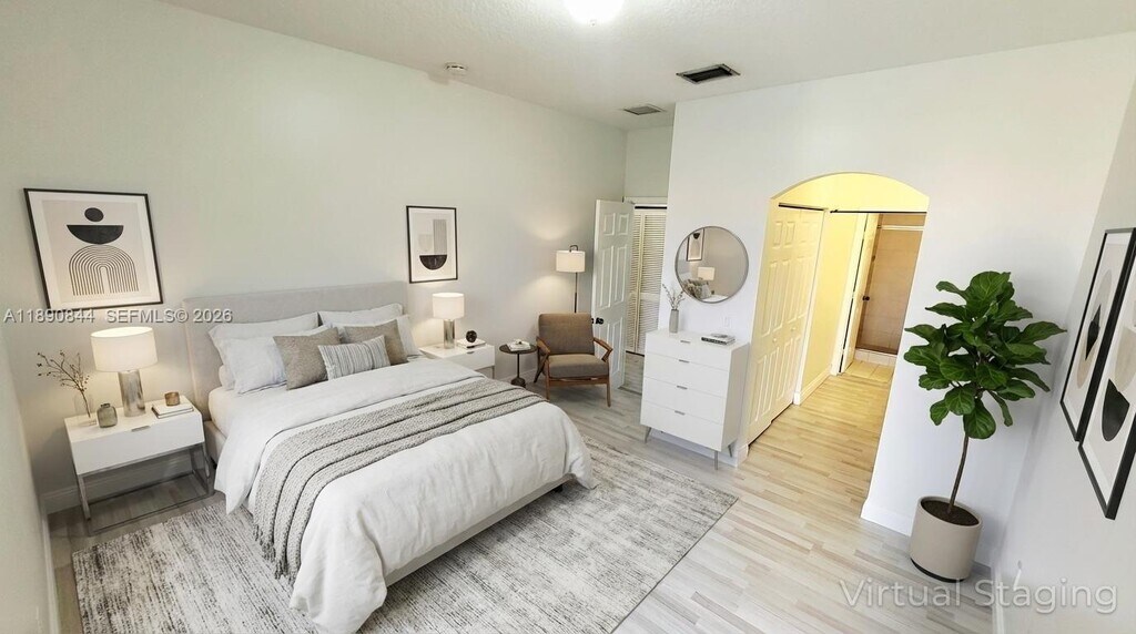 EASY TO SHOW -- Spacious 2 patios downstairs and a balcony upstairs, this 3-bedroom, 2.5-bath Mediterranean-style townhouse is one of the largest models in the community. The home features full-size washer and dryer, an inviting eat-in area that opens to the family room, and a separate living and dining area perfect for entertaining. Enjoy both front and rear patios offering great outdoor space. Upstairs you’ll find three generous bedrooms, including a primary suite with walk-in closet and ample storage throughout. Located within a 24-hour gated community offering resort-style amenities—pool, hot tub, and children’s park. Ideally situated near major highways, the airport, train stations, and public transportation. Just minutes from Outdoor World, Dania Pointe, top restaurants. YouTube property tour available 1 assigned parking and 1 guest MLS # A11890844