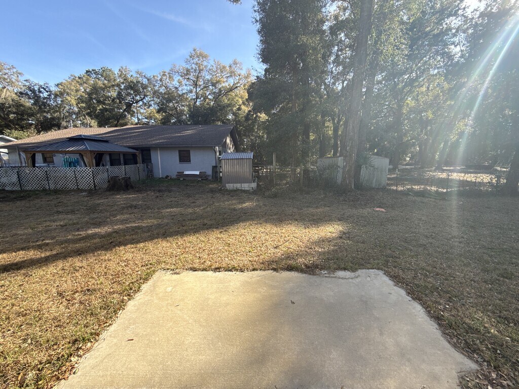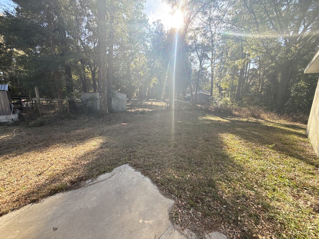 This lovely 3 bedroom, 2 full bath, 2 car garage home in Ocala offers the perfect blend of modern and privacy! As you step into this home you will be welcomed with vaulted ceilings and plenty of natural sunlight. The interior boasts with brown LVP flooring and granite countertops in the kitchen and bathrooms! The open floor plan seamlessly flows into the living room, adorned with stunning bright white shaker cabinets and a kitchen space overlooking the backyard. The kitchen ,featuring stainless steel appliances, a glass stove top, dishwasher, microwave, and a side by side water and ice dispenser all complimented by gray, black, and white granite countertops. Privacy is guaranteed with this split plan layout, especially in the master bedroom with its oversized walk-in closet and a master bathroom equipped with a stand-up shower, his & her sinks, and matching white shaker cabinets. If you venture to the backyard it offers a calming environment with lots of wildlife around you. To top it off this home offers its own private well and septic lowering your costs on utilities. Don't wait, come tour your new home today!