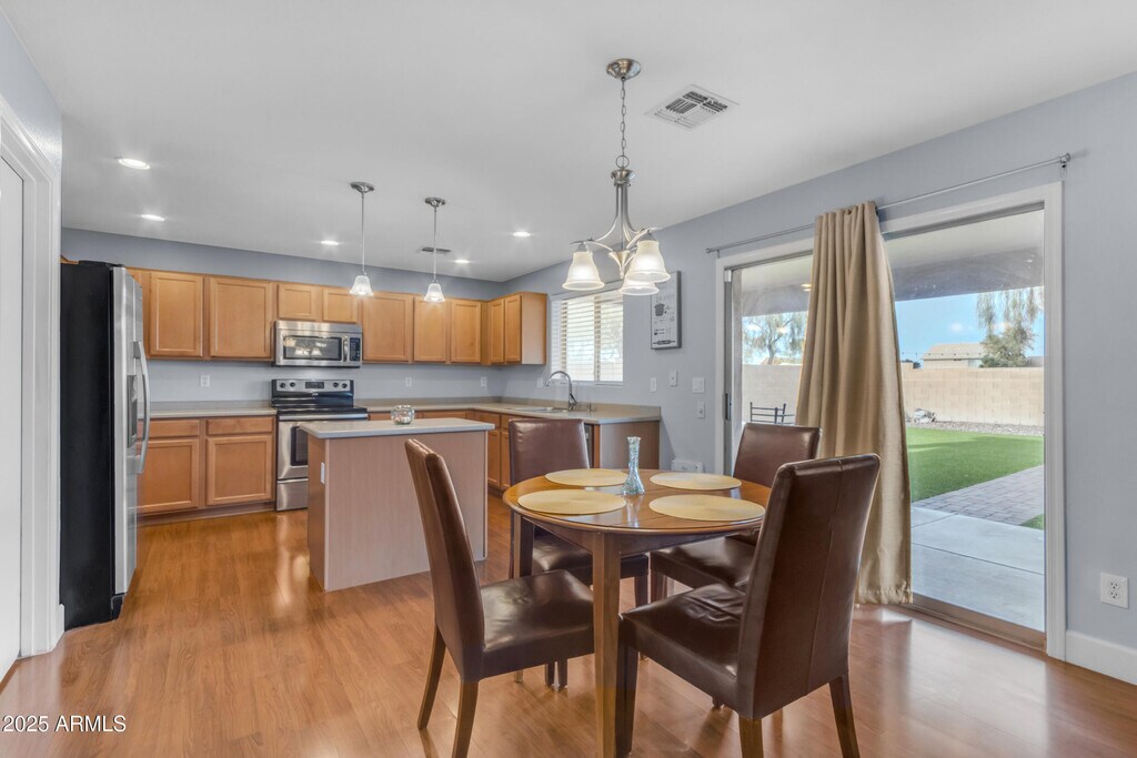 This remarkable home is situated in the renowned golf community of Rancho El Dorado,offering a high-end resort ambiance with scenic walking paths,serene lakes,and a variety of dining options and nearby shopping. Located in the ever-growing area of Maricopa,this Adorable 5 Bed/3 full Bath home is move in ready! Open floor concept,with spacious backyard,landscaped with beautiful green grass,perfect for entertaining! Upstairs features a loft with built in desks and entertainment area. Located near shopping and amenities.