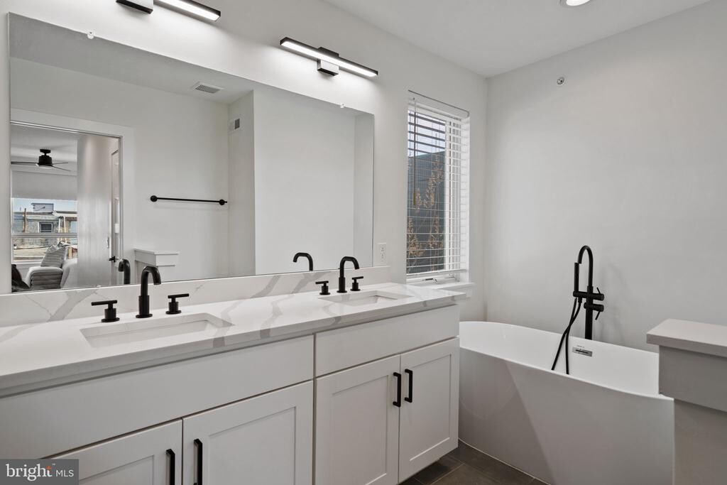 Welcome to 2235 N. Hope Street, a stunning home that immediately impresses with its sense of space, open floor plan, and high ceilings. The main level is flooded with natural light and flows effortlessly from the spacious living & dining area into a beautifully appointed kitchen. Features include Carrara quartz countertops, lots of cabinetry, including a pantry, and a convenient wall of built-ins, which would make an ideal serving station, coffee bar or wet bar. From the kitchen is access to the first of two private outdoor spaces, perfect for grilling. The second floor offers two bedrooms lush with natural light and tall ceilings, a modern hall bath, and a dedicated laundry area with full size front loading machines. On the third-floor you’ll find the ideal primary suite, complete with a walk-in closet and an en-suite bathroom featuring a free standing soaking tub, double vanity and a large glass-enclosed shower with a built in bench, perfect for relaxation. Oversized front windows flood the space with natural light. Just outside the suite, a hallway wet bar adds convenience for your morning coffee, as you head up to the expansive roof deck—an ideal spot to relax or entertain while enjoying panoramic city views. The fully finished basement provides excellent flexibility of use, featuring a full bathroom, making it perfect for a guest suite, home office, or secondary living room. Located on the border of Norris Square and East Kensington, this home is just moments from the continuously growing dining, shopping, and nightlife of East Kensington and Fishtown. Enjoy easy access to neighborhood favorites, green spaces, I-95 and the Market-Frankford Line (El) for a quick commute to Center City. Schedule your tour today!