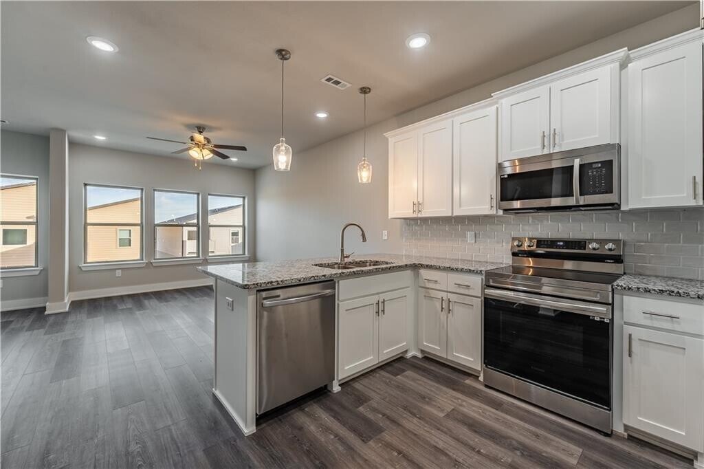 Beautiful townhome located in the heart of Fayetteville! Enjoy easy access to I-49, Sam's Club, Casey's, the University of Arkansas, and more! This townhome has great views of the neighborhood from the upstairs master balcony, LVP flooring, granite counter tops and custom cabinetry throughout home, custom interior design, walk-in showers and walk-in closets! Enjoy the space and privacy of both bedrooms having their own full bathrooms upstairs! (no sharing required) Downstairs holds the spacious second living room with storage closet that can be turned into a fitness room, media room, office space, man cave, or whatever you decide! Refrigerator, Washer, and Dryer included! MLS# 1324735