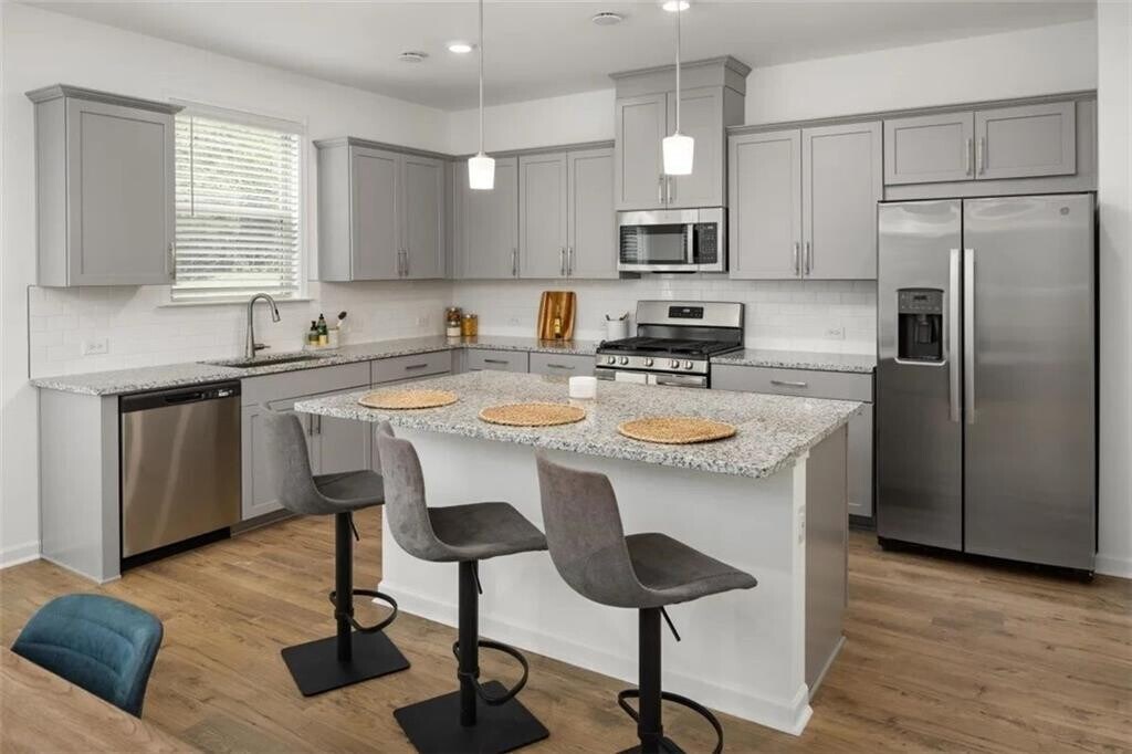 The four-bedroom Prescott Floor Plan is the epitome of luxury living in our Lawrenceville homes. A bevy of contemporary features make your routine breezy and your downtime supremely comfortable. We have Z-Wave locks and 2” blinds for privacy,Low-E windows and GE appliances for efficiency,granite/marble counters and plank floors for elegance,and walk-in closets to open the space even further. Here is where you can cook up a storm,invite loved ones over,channel your inner host,and create lasting memories. But you don’t have to be the entertainer—you can turn a room into the study you’ve always wanted,read to your heart’s content on the patio,or savor the company of your furry friends. The atmosphere of our community is unbeatable. If the inside banks on comfort and convenience,the outside means beautiful business. There are green spaces fit for various purposes,as well as a swimming pool reminiscent of summer holidays. If you’re the active type,you’ll love our lengthy walking trail—especially with a route as scenic as ours. Past our premises,you can find many destinations worth your while,but you need to be here to enjoy them……so come here and enjoy them! We’re waiting for you at our homes in Lawrenceville,GA. Photos are representative of model home,and not actual home. Listing address is actual address of home.