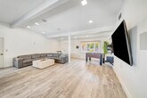 Welcome to this Woodland Hills Masterpiece an extraordinary, fully furnished single-family home nestled in the prestigious hills on a tranquil cul-de-sac. With sweeping 180 panoramic views reminiscent of Tuscany's rolling landscapes, this private sanctuary blends luxury, tranquility, and practicality for the ultimate living experience. Step inside and discover a home designed for both relaxation and entertaining. The expansive living and dining areas offer the perfect space for family gatherings, featuring a beautiful piano in the living room and a sleek wet bar to enhance your hosting experience. The chef-inspired kitchen, complete with push-to-open cabinets, is as functional as it is stylish, and a retractable window opens directly to a bar in the backyard, making outdoor entertaining effortless. The home features three spacious bedrooms. The master suite is a true retreat, featuring a king-sized bed and an ensuite bathroom with a double sink, a luxurious jet tub, and a shower. The bathroom also connects seamlessly to a generous walk-in closet, providing convenience and ample storage. The two guest bedrooms are equally well-appointed, each with a full-sized bed and a dedicated office space, complete with a desk and computer, ideal for work or study. Step outside to enjoy your own personal oasis. The backyard is complete with a sparkling infinity pool, a rejuvenating jacuzzi, and stylish outdoor furniture designed for dining and relaxation. An outdoor heater ensures year-round enjoyment of the space, while a Ping-Pong table adds an element of fun to the entertainment area. A half bath conveniently located outside in the backyard offers easy access for guests during outdoor gatherings, eliminating the need to run inside. The breathtaking views of the surrounding hills provide the perfect backdrop for any occasion. For indoor entertainment, a foosball table offers hours of fun, and the luxurious, Italian-made power-reclining sofa promises ultimate comfort after a long day. The custom-built garage offers abundant storage, and the home is designed with convenience in mind. Set in a warm, welcoming neighborhood with caring neighbors, this home offers a rare balance of sophistication and community. It's not just a place to live- it's a place to thrive. Whether you're entertaining, relaxing, or enjoying family time, this home provides the perfect environment for every occasion. If you are interested in a short-term rental of under a year, please contact us to explore your options.