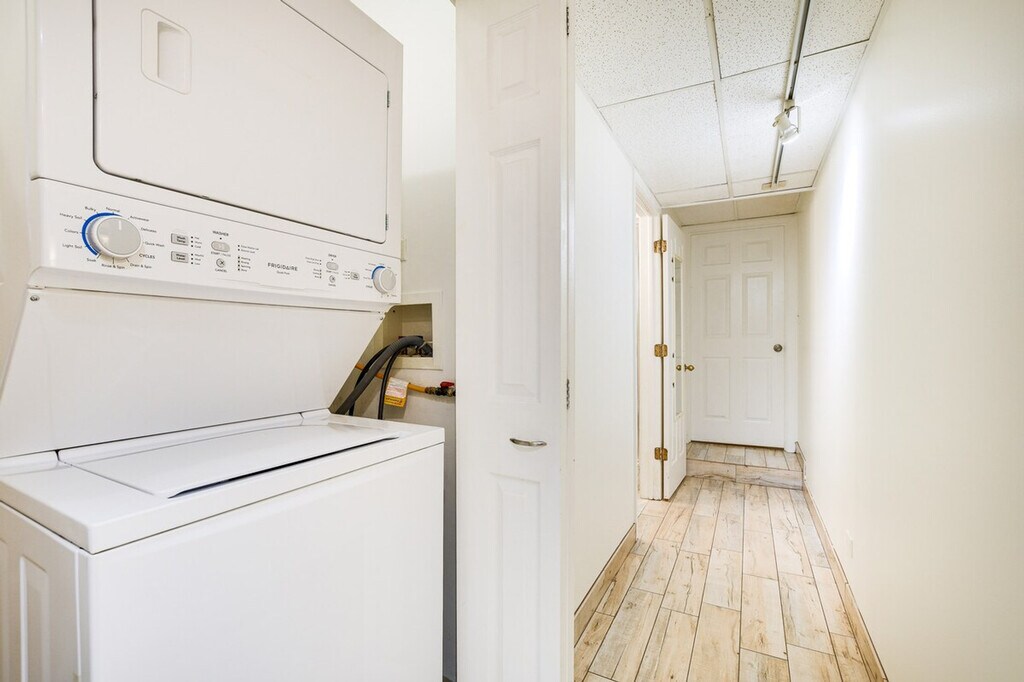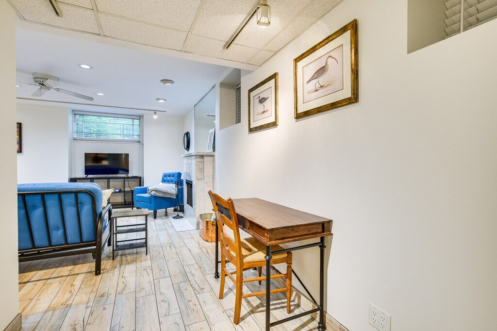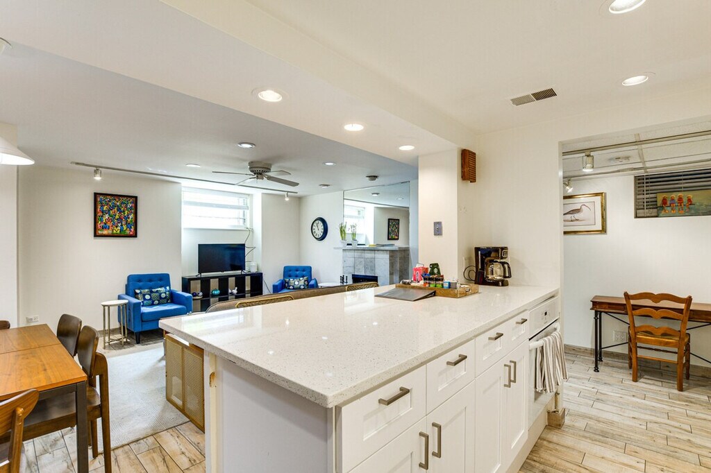 Escape to this charming 1-bedroom, 2-bath apartment in the heart of Lincoln Park! Note that stairs are required to access the entrance. Feel at home in this inviting apartment, the perfect place to call home during your Windy City adventure. This 850-square-foot apartment features free Wi-Fi and in-unit laundry. Relax in the spacious living room with a fireplace and enjoy morning coffee on the furnished patio. The kitchen is fully equipped with a fridge, stove, dishwasher, coffee maker, microwave, cooking basics, toaster, dishware, flatware, trash bags, and paper towels. Other amenities include a smart TV, dining table, central heating and A/C, complimentary toiletries, a hair dryer, linens, towels, an iron, an ironing board, and ceiling fans. Garage parking is available for 1 vehicle. Centrally located near top attractions like Millennium Park, the Art Institute of Chicago, and the famous Magnificent Mile, this apartment offers the best of Chicago. No smoking, pets, events, parties, or large gatherings are allowed. A photo ID may be required upon check-in. Your safety matters. This property features 2 exterior security cameras: 1 camera is located on the front of the property facing the entrance, and 1 camera is located on the back of the apartment facing the back door. The cameras are outward facing and do not look into interior spaces. The cameras record video when activated by motion. Includes a laptop-friendly workspace. Registration Number: R2 [SI]