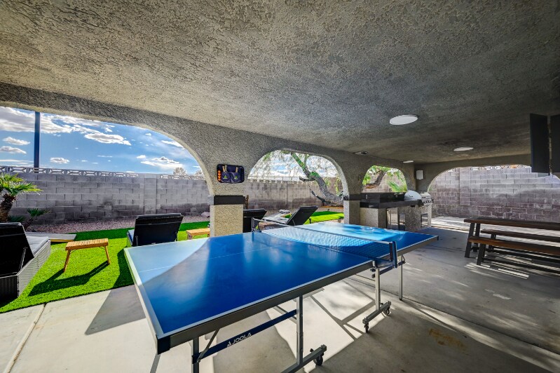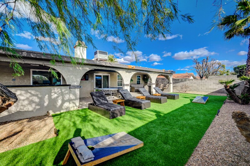 Property Id: 1754771 **Luxury Rental Home in Henderson with Private Backyard Oasis** This stunning, high-end home offers the perfect blend of style, comfort, and convenience, just minutes from the airport and a short drive to the Las Vegas Strip. The chef’s kitchen features an island with bar stools, a built-in breakfast nook, and a dry bar. The dedicated work area features a large desk, a leather chair, and includes a monitor. The spacious living room boasts a 100” projector screen with AppleTV. Each bedroom has a king-size bed, while both bathrooms offer walk-in showers with a rain head and a hand-held shower head. Enjoy a private backyard with plenty of seating, lounge chairs, an outdoor BBQ, and views of the mountains. Additional amenities include a wood fireplace, washer/dryer, 2-car garage, and a whole-house water softener + filter. Located in a quiet neighborhood with a paved walking path, and close to shopping, dining, and grocery stores.
