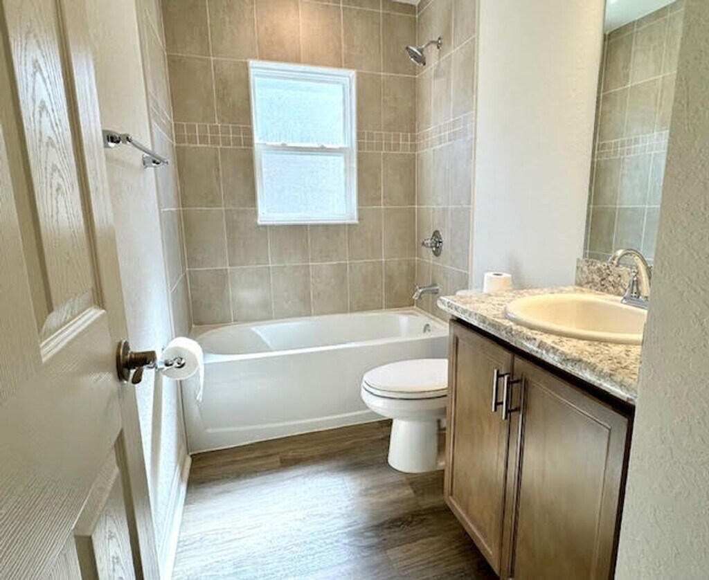 Brand new and beautifully designed, this one-story home offers 1,715 square feet of living space, featuring four bedrooms, two bathrooms, and an open-concept living area. The modern kitchen boasts sleek Silestone countertops, Samsung stainless steel appliances, a walk-in pantry, and a spacious island that seamlessly connects to the dining café and gathering room, making it ideal for entertaining. The living area, laundry room, and bathrooms are adorned with luxurious wood vinyl plank flooring, while the bedrooms offer cozy, stain-resistant carpeting. The private owner’s suite is a true retreat, complete with a walk-in wardrobe and an en-suite bath featuring dual vanities, a tiled shower, and a separate closet toilet. Step outside to enjoy the covered lanai and relax in your own outdoor oasis. The home also includes a 2-car garage, custom-fit window blinds, architectural shingles, energy-efficient insulation, and windows and comes with a full builder warranty for added peace of mind. Don’t miss out on this fantastic opportunity to make this brand-new home your next rental!