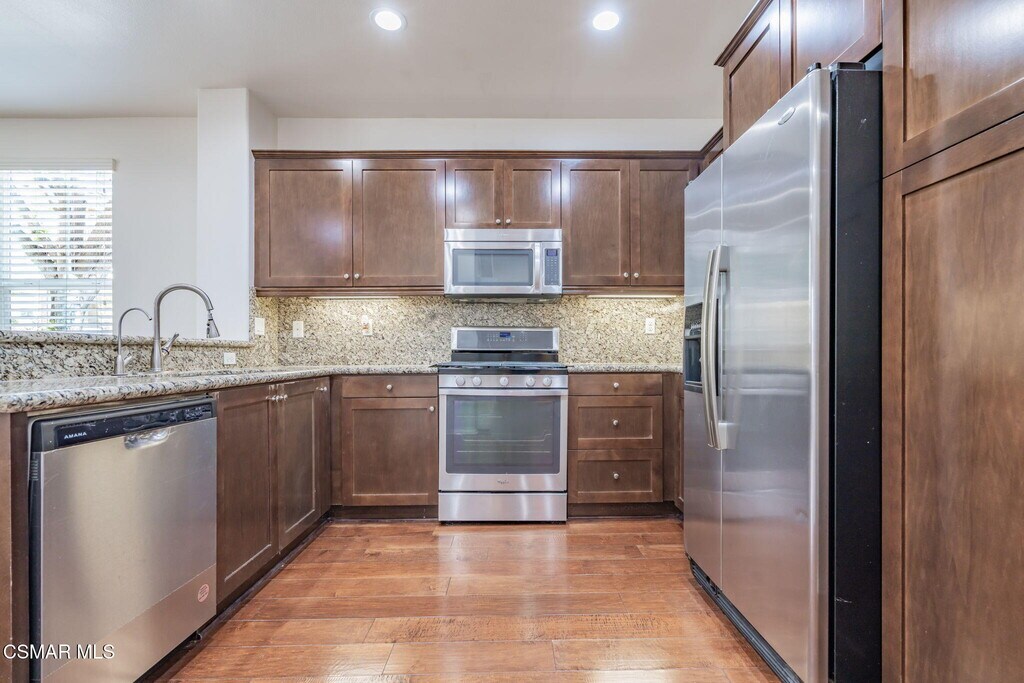 Prime End-Unit Townhome with HUGE Private 3rd-Floor Sun Terrace, SOLAR with BATTERY BACKUP & EV Charger in Simi Valley!Discover sophisticated living in this modern tri-level townhome, in a luxurious resort-style community, constructed in 2013. This private end-unit shares only one wall, offering exceptional tranquility.Designed with tomorrow in mind, this home features a fully-owned solar power system with battery backup to provide power during unexpected outages! The attached two-car garage also includes a dedicated EV charger for ultimate convenience. Smart devices control temperature, lighting, door and garage.Enjoy true peace of mind. Every home in this modern development is equipped with a dedicated, automatic fire sprinkler system. This collective, uniform protection ensures minimal impact from neighboring incidents and creates a substantially safer environment.This location is highly desirable for both work and leisure offering excellent access to 118 freeway, and Metrolink train station. Convenient to shopping and restaurants. The heart of the home is a chef-inspired kitchen, equipped with granite countertops and stainless steel appliances, connecting to an open-concept dining space. Unwind in the main level living room, highlighted by a charming fireplace.The second level hosts three well-proportioned bedrooms and a versatile central living area, perfect as a family den or study.The entire third level expands your space with a flexible loft area and an additional room (with closet), perfectly suited as a fourth bedroom or expanded office space.Your private sun terrace awaits! Enjoy spectacular, massive, private 3rd-floor sun terrace (approx. 125 sq. ft.). This uncovered, high-walled outdoor sanctuary provides abundant light and privacy, safety and is the ultimate extension of your living space. Enjoy a sun-drenched sanctuary completely private from neighbors and street view. Benefit from elevated security and freedom from ground-level pests. This private oasis is your year-round escape: ideal for container gardening, moonlit dinners, sun-drenched relaxation, and unforgettable nights sleeping under the stars. Entertain guests or simply unwind in this secluded, safe, open-air retreat.Residents enjoy exclusive access to resort-style community amenities, including a refreshing pool and a vibrant children's play area, complementing an active and convenient lifestyle.