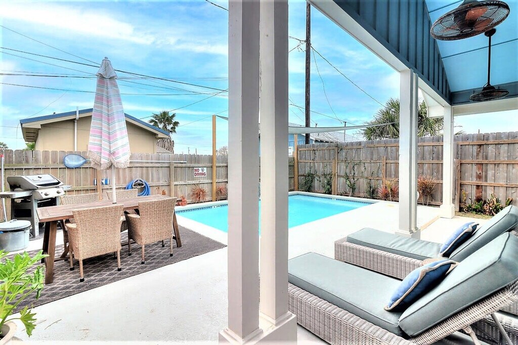 The advertised rate of $7,274/month is the lowest available price, based on a 1 month(s) stay with a move-in date of September 2, 2026. Rates vary depending on the duration of stay, season, and other parameters. For exact pricing and additional pricing components, please visit our website and enter your desired move-in and move-out dates. The rate is applicable when billed upfront; it can be higher if billed in multiple payments. Feel at home in this adorable 2-bedroom home in a prime Port Aransas location. This newly renovated island home accommodates up to 6 guests. This home features a fully stocked kitchen with high-end appliances, a large refrigerator, ample cabinetry, and a coffee bar with a drip coffee maker. Enjoy the flat-screen TVs in all rooms, a cozy seating area in the living room, and a dining table. There is also a washer and dryer for your convenience. Enjoy the private heated pool for an additional fee of $125 per stay with 24 hours' notice. A pack-n-play and high chair are available for family use. This home is in a golf cart-friendly location and is within walking distance of shops and restaurants. Nearby attractions include Port Aransas Beach (a 5-minute drive), Roberts Point Park (a 6-minute drive), Port Aransas Nature Preserve (an 8-minute drive), The University of Texas Marine Science Institute (a 5-minute drive), and Leonabelle Turnbull Birding Center (a 6-minute drive). Nearby restaurants include Irie’s Island Food (a 3-minute drive), Trout Street Bar & Grill (a 4-minute drive), Virginia’s on the Bay (a 5-minute drive), La Playa Mexican Grille (a 5-minute drive), and MacDaddy’s Family Kitchen (a 6-minute drive). Limited parking is available for 2 vehicles. The primary renter must be at least 25 years old to book this property. Check-in is at 4 PM and check-out is at 10 AM. Pets are not allowed. Smoking and/or vaping is not allowed inside or outside this property and will result in a $500 charge if evidence of smoking exists. No loud music or parties outside between 10 PM and 7 AM per city ordinance, and any violators will be asked to leave without a refund. [SI]