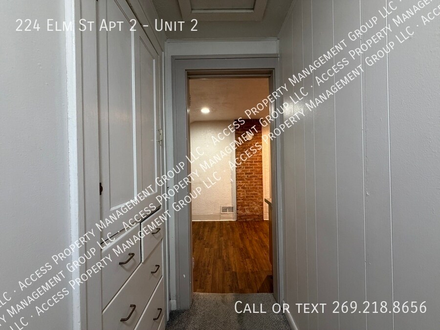 224 Elm St Apt 2 is a one bedroom unit located on the upper level of this large, historic duplex. This unit features a large kitchen with dining area, full bathroom, a large living room and a bedroom. Upon entry you immediately go up stairs to the landing. The first room is located at the top of the stairs. The kitchen is located down the hall and includes range, oven and fridge. There is plenty of room in the kitchen for a dining table, too. The hallway off the kitchen continues to the west where you will find a large open room with tall ceilings and a connected full bathroom. Tenant pays for trash. Tenant also pays $35/mo for water/sewer in addition to the rent. Gas, Electric, lawn care and snow removal are included. No Pets and No smoking! "The rental or lease of this property must comply with the City of Kalamazoo ordinance regulating the use of criminal background checks as part of the tenant screening process to provide individuals with criminal backgrounds a fair opportunity. For additional information please contact the City of Kalamazoo Civil Rights Board." $35 Water Sewer Charge Monthly $50 Application Fee Per Adult Covered Porch Driveway Shared Gas Included! No Laundry Facilities No Smoking! Not Pet Friendly Security Deposit Equal To 1 Month's Rent Snow Removal Within 24 Hrs Of Snowfall Included Tenant Pays Trash