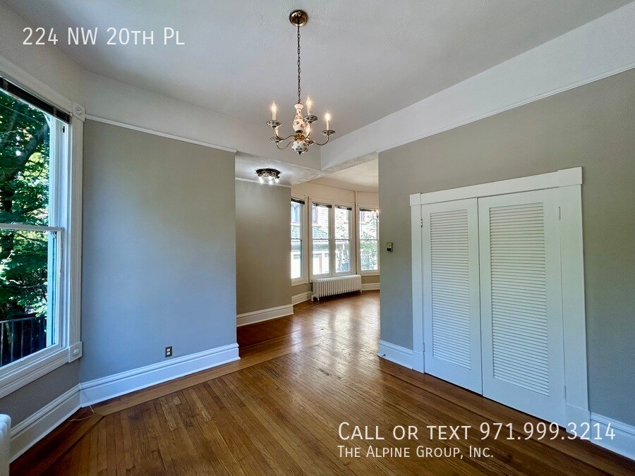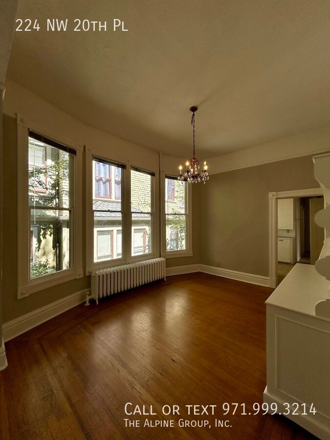 Step into timeless elegance in this historic Victorian main-floor residence within a charming tri-plex, now available for rent. ? This home showcases classic character with original hardwood floors throughout the spacious living and dining rooms, soaring ten-foot ceilings, ornate chandeliers, and beautiful custom built-ins that capture the charm of a bygone era. Enjoy the convenience of shared on-site laundry. Street parking is available with a City of Portland parking permit. Perfectly located just blocks from the vibrant NW 23rd district and tucked directly behind Fred Meyer, you’ll have shopping, dining, and daily essentials right at your fingertips. A rare opportunity to experience historic beauty paired with modern-day convenience—don’t miss it! UTILITIES TENANT TO PAY: Electric - PGE Gas - NW Natural Water/Sewer - $100/mo. for one occupant, $160/mo. for 2 occupants. Trash - $32.35/mo. RENTERS INSURANCE Proof of renter's insurance required prior to move-in and required to be maintained throughout tenancy. PETS There are a max of two pets. All pets must be at least one year old, spayed/neutered and current on all shots and immunizations. Please submit proof from your veterinarian with all current shots and immunizations. Pet rent is $25 per pet, per month. A pet picture is required. Breed restrictions do apply. Management reserves the right to deny any animal, at any time, for reasons including: aggression, behavior issues, etc. An additional deposit of $500 per pet is required. APPLICATION PROCESSING Accepting applications Jan 1st at 9 am! All complete applications are processed in the order received. If you are in a back-up position, your application fee will not be processed if another application is approved before yours. Fees are non-refundable once we start screening your application. Please note that we do NOT accept Zillow applications. Upon approval, you will have 48 hours to provide a holding deposit; This deposit secures the unit for 2 weeks. You will have 14 days to take possession of the unit or take financial responsibility. INCOME REQUIREMENTS Gross income should be 2.5 times the rent. View our Rental Criteria on our website or contact our office. SMOKING All of our homes are smoke free. Smoking is only allowed a minimum of ten feet away from the property. MARIJUANA This property will not allow the growing or smoking of marijuana. This unit does not qualify as a Type A Accessible Dwelling Unit pursuant to the Oregon Structural Building Code and ICC A117.1. ALL INFORMATION IS DEEMED RELIABLE BUT NOT GUARANTEED