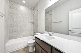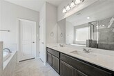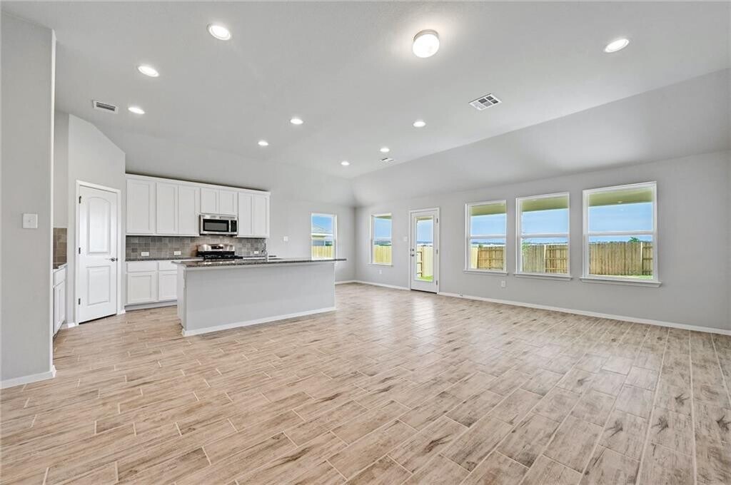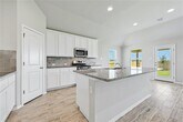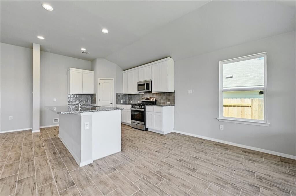 This lovely home was built in 2022 and is located across the street from the amenity center. It's like having a pool in your backyard! The open, eat-in kitchen features granite counters, painted cabinets and stainless steel appliances. Easy care tile flooring throughout all the main areas with carpet in the bedrooms only. Included in the lease are a refrigerator, blinds, garage door opener and sprinkler system. You will also appreciate the level yard and extra large covered patio. Great proximity to an in-community elementary school, open areas, amenities, major thoroughfares and shopping.