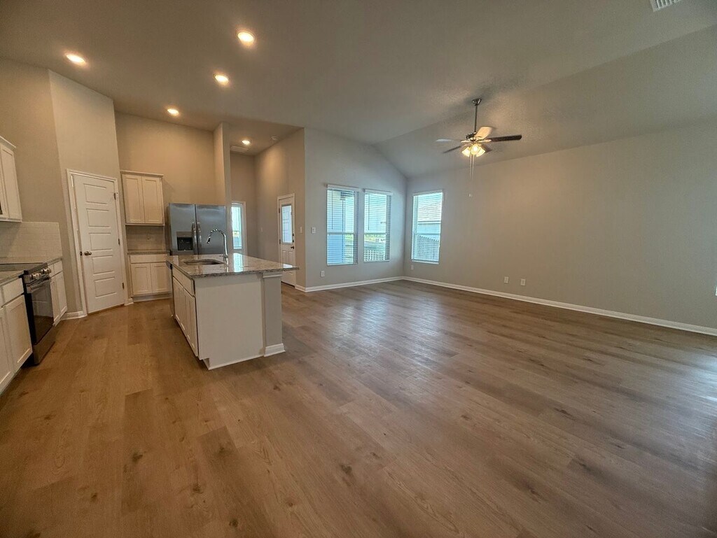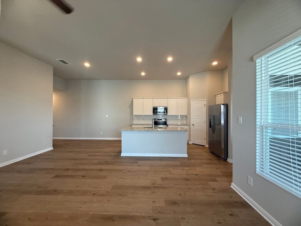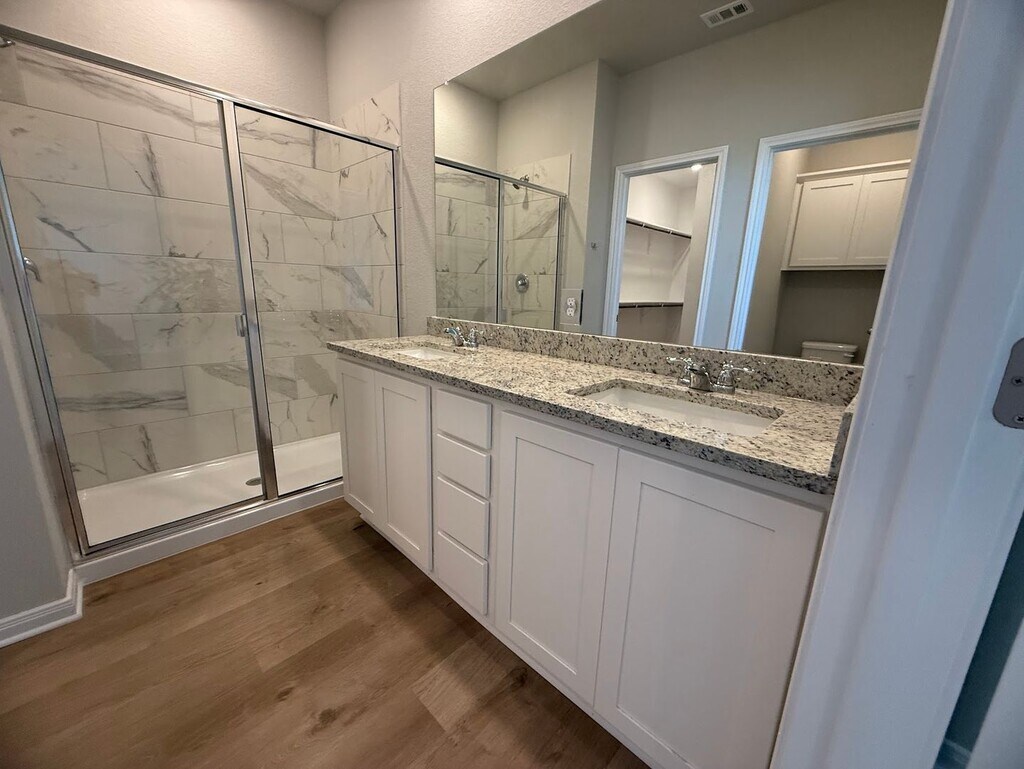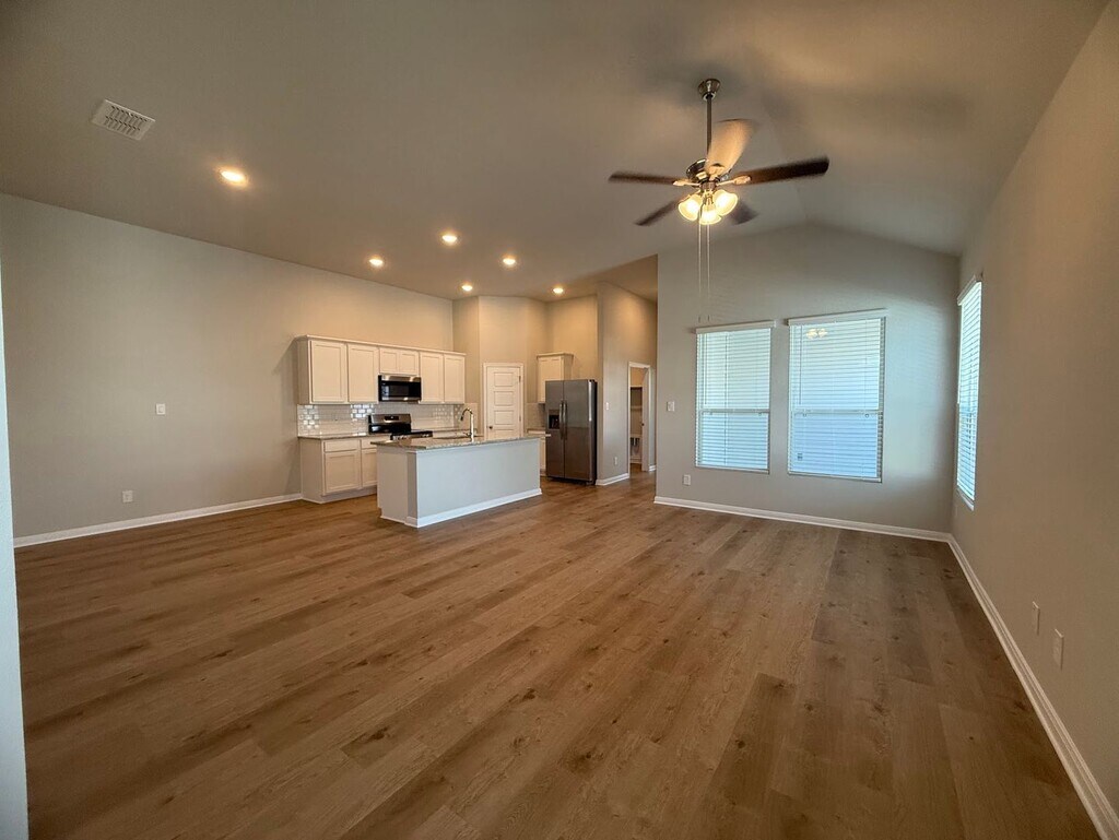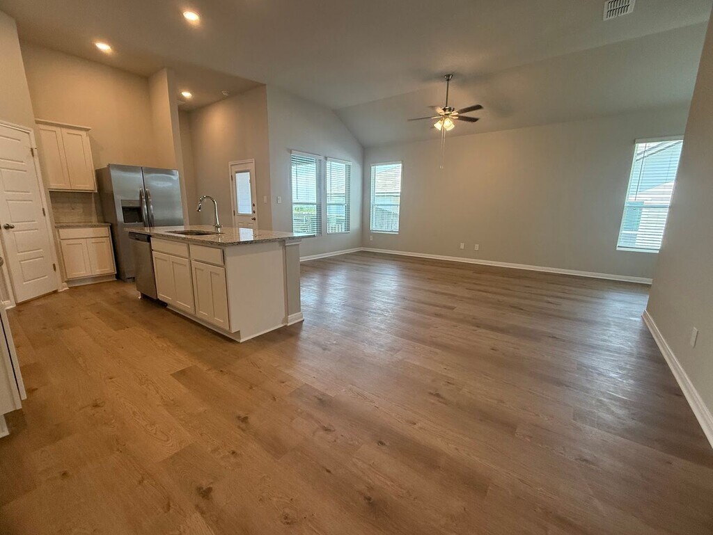 This beautifully designed 3-bedroom, 2-bathroom duplex features just under 1500 sq. ft. of ample living space, boasting an open-concept layout, hardwood laminate flooring, and soaring 11-foot ceilings. Large windows throughout provide excellent natural light in every room. A stunning chefs kitchen includes; stainless steel appliances, granite counter tops, large kitchen island, stylish tile backsplash, and sleek white cabinetry. The spacious primary bedroom, located on opposite end of the home from the secondary bedrooms, features an ensuite bathroom including granite counter-tops, double vanity, generous cabinet storage, and a luxurious walk-in shower. The expansive walk-in closet is sure to impress, offering more than enough space for all your needs. Just off the garage, you’ll find a practical and stylish drop zone—perfect for organizing your daily essentials. Every inch of this home is designed with functionality in mind and smart storage solutions throughout. This property has added bonuses of LVP throughout (no carpet anywhere) and ceiling fans in all the bedrooms! Start and finish your day on the private patio looking out to a spacious, fully fenced backyard. Perfect for enjoying the breathtaking open skyline. Located just 15 minutes south of downtown Austin via I-35, this prime location also offers easy access to Kyle, San Marcos, and New Braunfels. Don't miss this opportunity to experience living the perfect blend of style, comfort, and convenience at Emma Park!