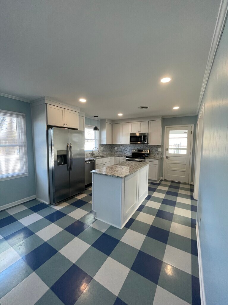 Newly renovated single family house with 3 beds/2 full baths. Roof, electric, waterline, plumbing, kitchen, and bathrooms all updated. Laundry room, 2 car garage with storage, and bonus room in basement. Fully fenced backyard and 2 room sized covered porches not included in square footage. Driveway to kitchen door and separate to garage. 4 person occupancy limit, $50 application fee, tenant pays background screening costs. Landlord maintains yard. Security deposit + 1 st months rent to move in. Available for immediate occupancy.