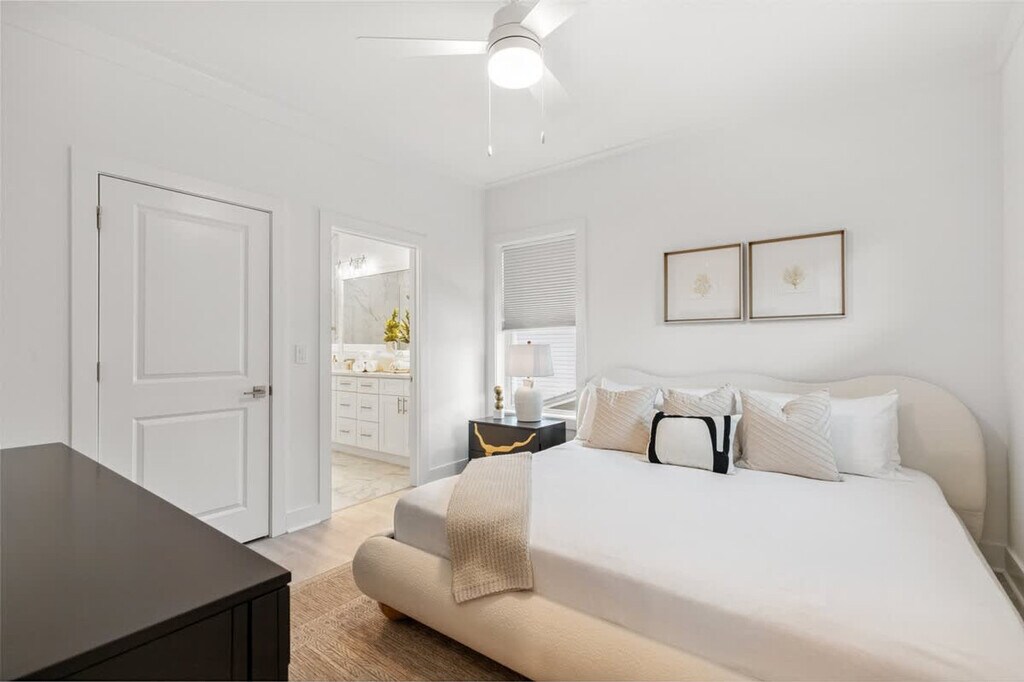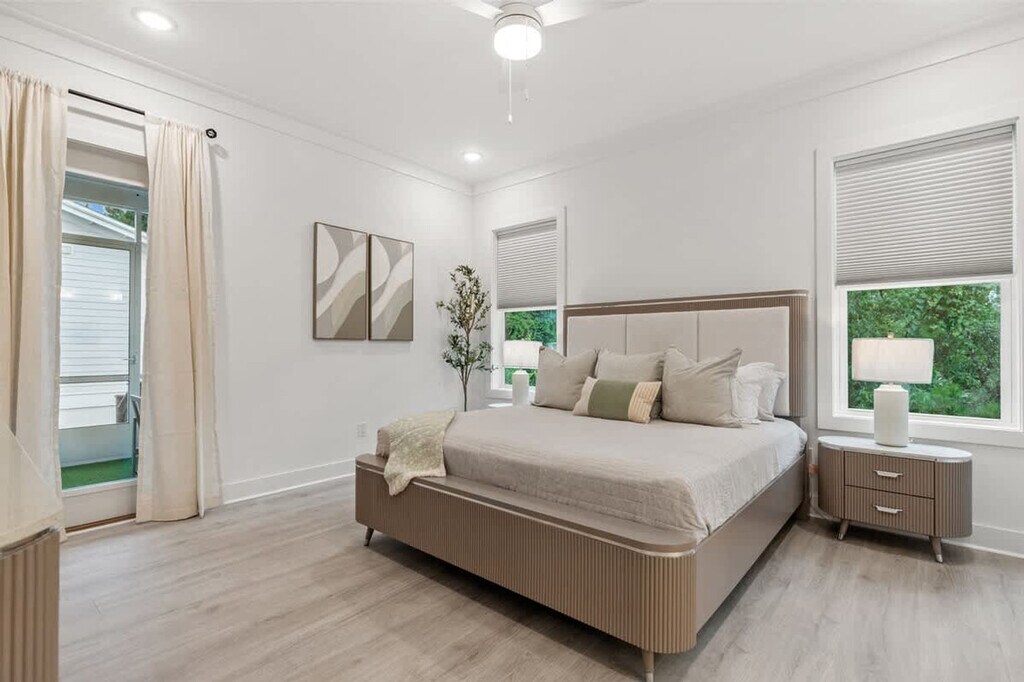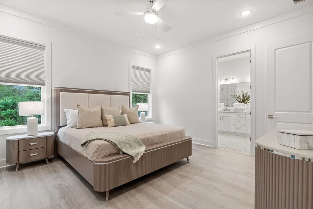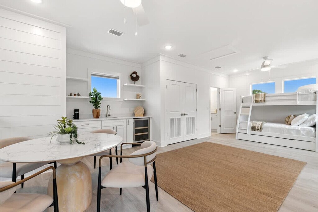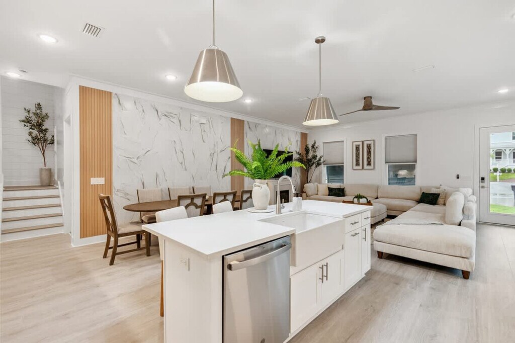 Feel at home in this stylish 4-bedroom home in the coveted 30A area, combining modern comfort with beachy elegance. This home features a spacious open living area with custom accent walls, large sectional seating, and a smart TV over a cozy electric fireplace. The fully equipped kitchen is perfect for whipping up meals. The laundry room, equipped with brand-new appliances, adds convenience to longer stays. Take advantage of the Preserve community pool just a short stroll away. There is parking for a maximum of two vehicles, but the garage is not accessible. Located minutes from the white sand beaches of Inlet Beach and Rosemary Beach, you’re also a quick drive to popular spots like The Big Chill 30A (formerly The Hub), Donut Hole, Pescado Rooftop Bar, and Shades Bar & Grill. Explore scenic bike trails, boutique shops, and weekly farmers' markets nearby. Check-in is at 5 PM CST, and check-out is at 9 AM CST. [SI]