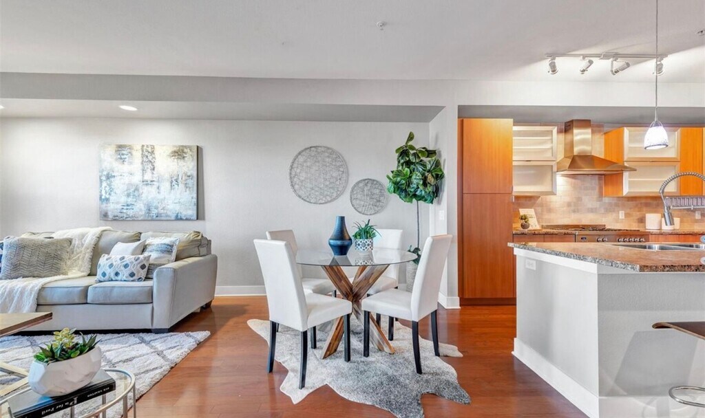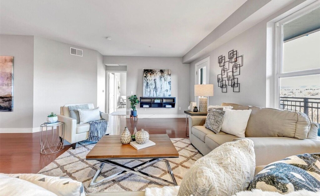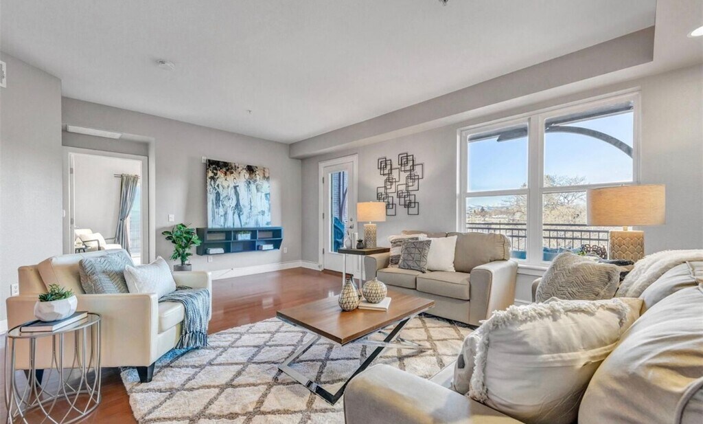 Step into Unit #510 at River Clay Condos and experience an open, airy floor plan designed for effortless living. Sunlight pours through expansive windows, filling every room with warmth and showcasing stunning city, park, and mountain views. The modern kitchen features premium appliances, sleek countertops, and generous storage, flowing seamlessly into the spacious living and dining areas—perfect for entertaining or quiet mornings with a view. Two private patios extend your living space outdoors, ideal for enjoying Denver’s sunshine and skyline. The primary suite offers a large walk-in closet, spa-like bath, and its own private patio, while the second bedroom also includes a walk-in closet, private patio, and adjacent full bath. Additional perks include in-unit laundry, two deeded parking spaces in a heated garage, and extra storage. Bright, open, and thoughtfully designed—this home captures the very best of Denver living.
