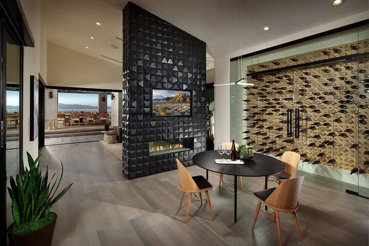 Ultra modern luxury 4 bed/4.5 bath home is 4,451 sq ft with a resort like backyard complete with a pool with a swim up bar, hot tub, BBQ, and breathtaking views of the Las Vegas Valley. This home nicknamed "The Wall" features a two-story rock wall architectural element that anchors and defines the home and won 2 "awards for Design and Architecture awards. This home is in a gated Henderson location that's only 12 mins away from the airport and 20 mins away from the strip. The house has 3 bedrooms upstairs each with its own bathroom and a walkout balcony. The downstairs room has its own bathroom and a little kitchenette. The master bedroom has a king sized bed and the other 3 bedrooms have queen sized beds. There are two fireplaces in the house, a 2-car "racecar" themed garage with a "man-cave" on the side with its own bathroom and urinal! You've really got to see it to believe it, this house is straight out of an architectural magazine. $15k price based on long term lease, fully furnished with no utilities. Utilities may be included for an additional fee.