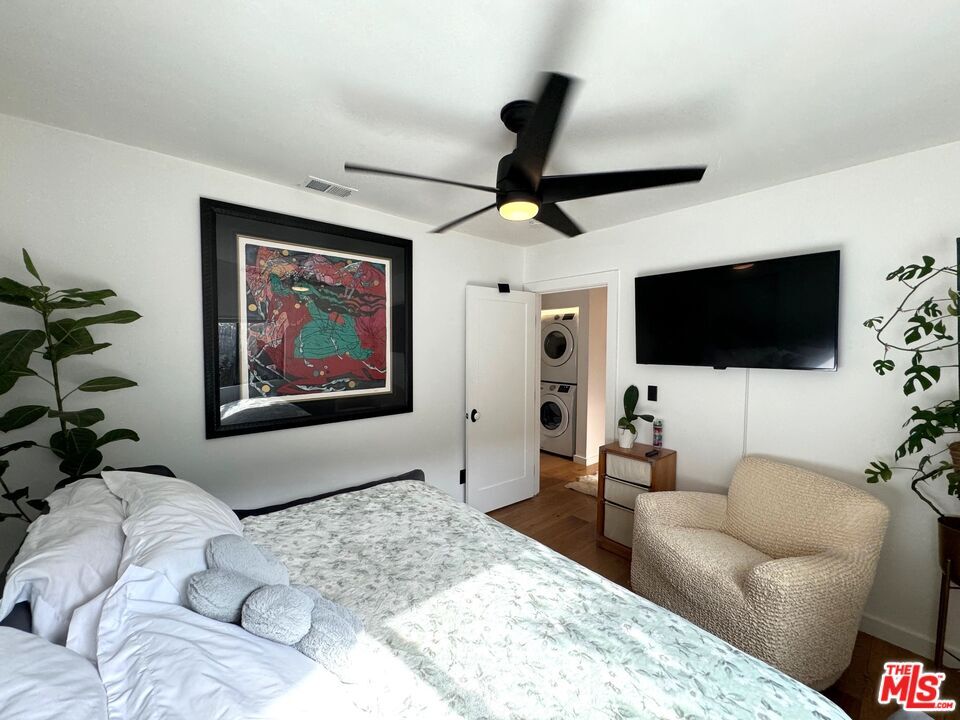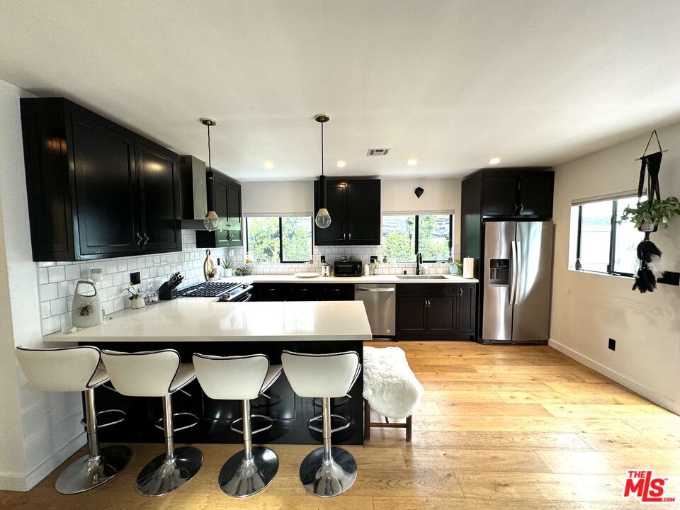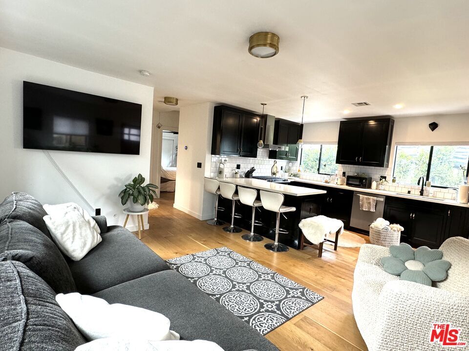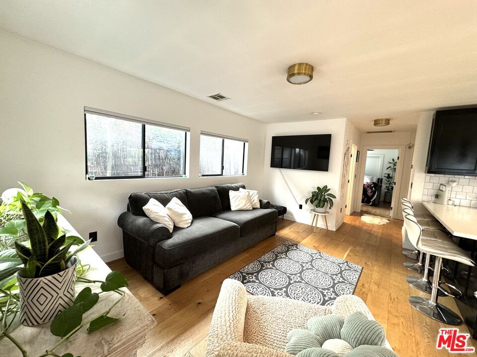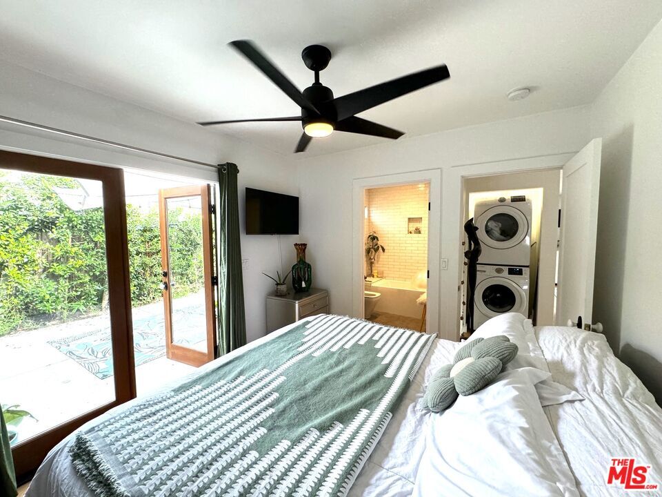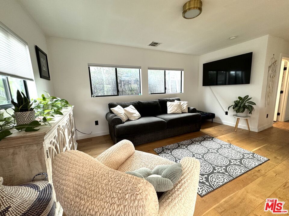 Spacious open floor plan tucked away in a private setting. This special home has attention to detail from the great room to primary bedroom with french doors to a lush landscaped patio and yard. 2 bedroom, 2 designer bathrooms w/honed concrete flooring and custom subway tile w/detached 120 sqft bonus room beautifully finished with recessed lighting and ceiling fan. Washer/dryer stackable included, gorgeous wide plank wood flooring, gourmet style kitchen with attached peninsula counter seating 4 adjacent to dining area. Stainless appliances w/abundance of light through surrounding windows. Property is completely gated and feels warm, lush and private. Huge front patio w/large landscaped yard. Close proximity to Atwater Village, Silverlake Reservoir and a short drive to Griffith Observatory or Downtown LA. Yard is beautifully landscaped and completely fenced and gated. MLS# 25621241