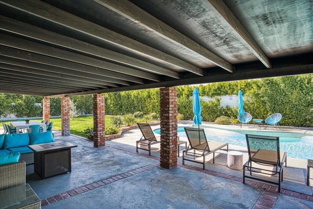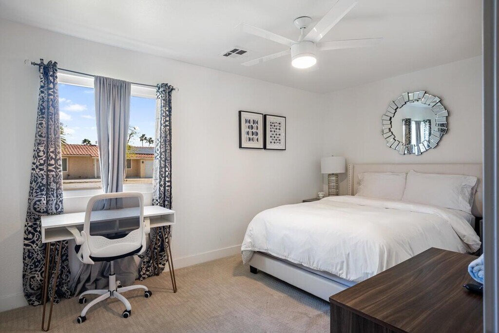 Spacious and stylish,this 4-bedroom,2-bathroom home in Palm Springs offers comfortable desert living with an open layout,modern updates,and a private backyard retreat. Inside,you'll find a bright and airy floor plan featuring a remodeled kitchen with quartz counters and stainless steel appliances,generous living and dining spaces,and tile flooring throughout. The primary bedroom includes an en-suite bath and direct access to the backyard. Three additional bedrooms offer versatility for guests,office space,or creative use. Outside,enjoy a sparkling pool,covered patio,and low-maintenance landscapingperfect for relaxing or entertaining year-round. Additional features include central air and heat,in-home laundry,and an attached two-car garage. Conveniently located just minutes from downtown Palm Springs,parks,restaurants,and shopping. Available furnished for a 12-month lease. Tenant pays utilities. Pool service included. SHORT TERM AND SEASONAL LEASE ALSO CONSIDERED. No smoking. Pets considered upon approval.
