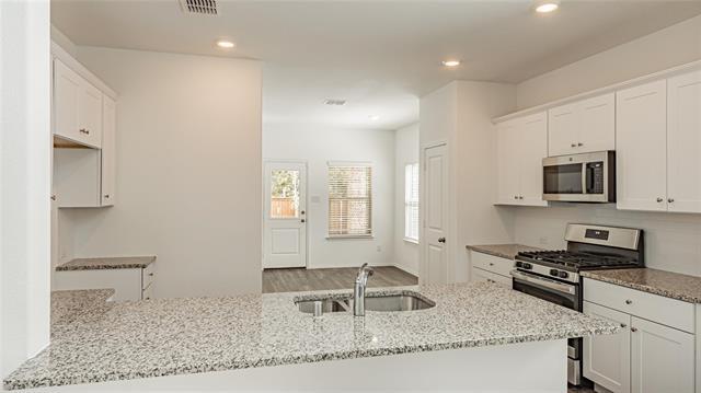 Stylish Lennar two-story brick and stone home in brand new condition featuring 4 bedrooms, 3 baths, and a 2-car garage. Conveniently located near the community pool and playground. The open floor plan is filled with natural light. The kitchen includes highly desirable stainless steel appliances, granite counters, a gas stove, and white farm-style cabinets. A beautiful master suite and guest quarters are located on the ground level. Upstairs features two additional bedrooms and a spacious game room. The wood-fenced backyard with covered patio offers both style and privacy. This home is nestled within minutes of the expanding and growing Hwy 380 corridor. Washer, Dryer and Refrigerator are provided for your convenience.