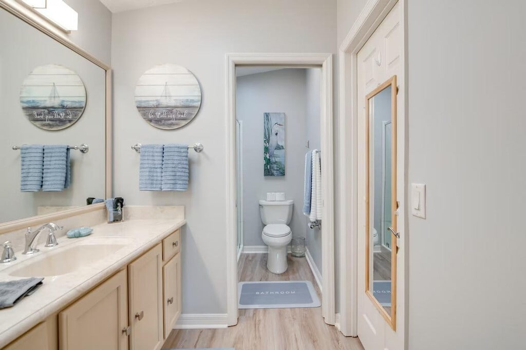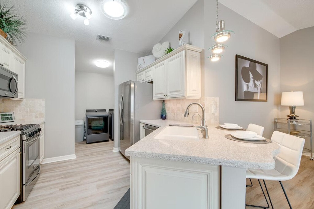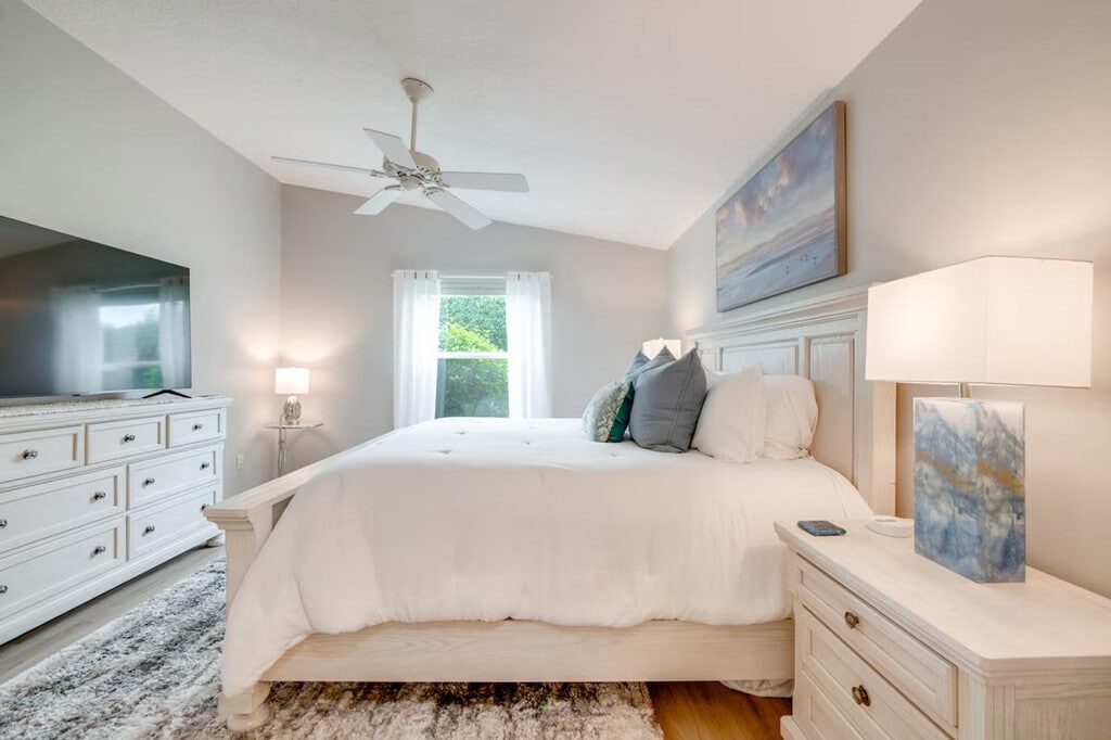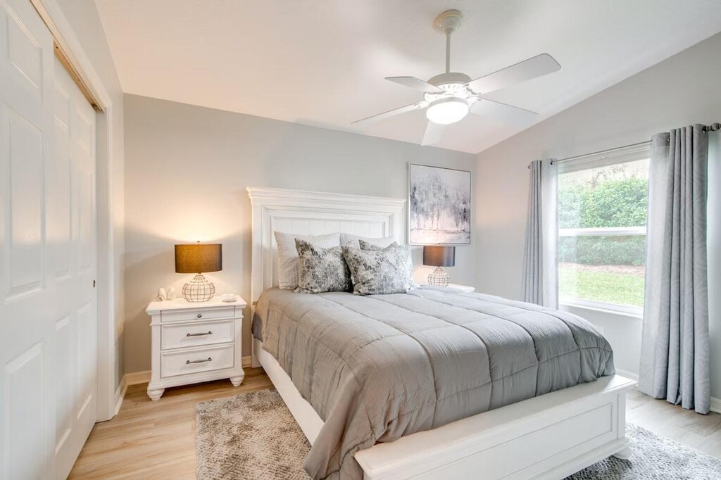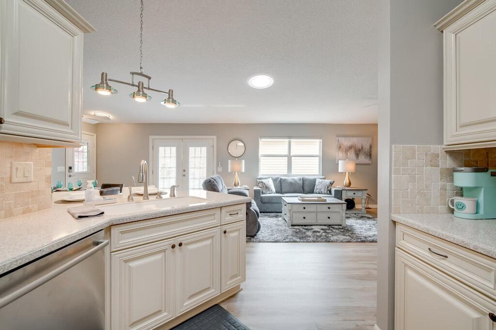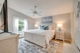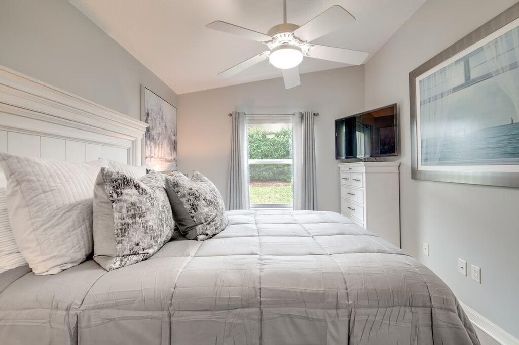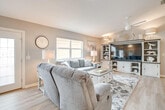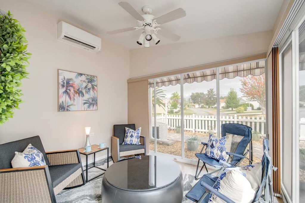 Embrace the laid-back lifestyle of The Villages with a stay at this welcoming 2-bedroom, 2-bath home, the perfect place to soak up the sunshine and feel at home. This single-story home offers step-free access. Fuel up for the day with coffee in the sunroom, then decide between golfing, poolside lounging, or retail therapy to fill the rest of your itinerary! This home features smart TVs (75", 65" and 40"), board games, a dining table, a sunroom with seating, a modern interior, and a private patio with outdoor seating. The kitchen includes a refrigerator, stove/oven, dishwasher, Keurig coffee maker (starter coffee provided), toaster, microwave, cooking basics, dishware, and flatware. You'll also find free Wi-Fi, keyless entry, central A/C and heating, ceiling fans, a washer, dryer, iron and board, linens and towels, complimentary toiletries, a hair dryer, and hangers. Additional fees are required to access the community amenities and must be paid on-site. Guests wishing to use all amenities must purchase recreational passes ($50 for a 2-person pass, payable by cash or check) at the district customer service center at Sumter Landing. Centrally located in The Villages, this home is 3 miles from Lake Sumter Landing and within walking distance of the community pool. Surrounded by resort amenities, exciting town centers, and championship golf courses, this home offers easy access to biking/hiking trails, parks, and golf cart paths. Enjoy seasonal outdoor movies and concerts. No smoking or vaping of any kind, pets, events, parties, or large gatherings are allowed. [SI]