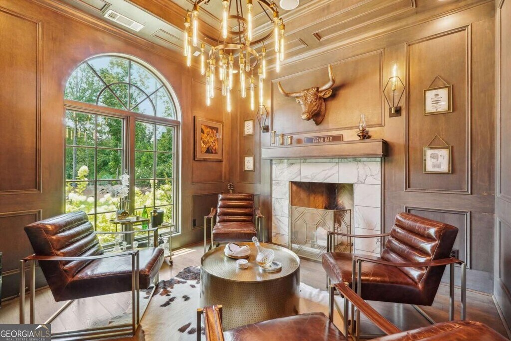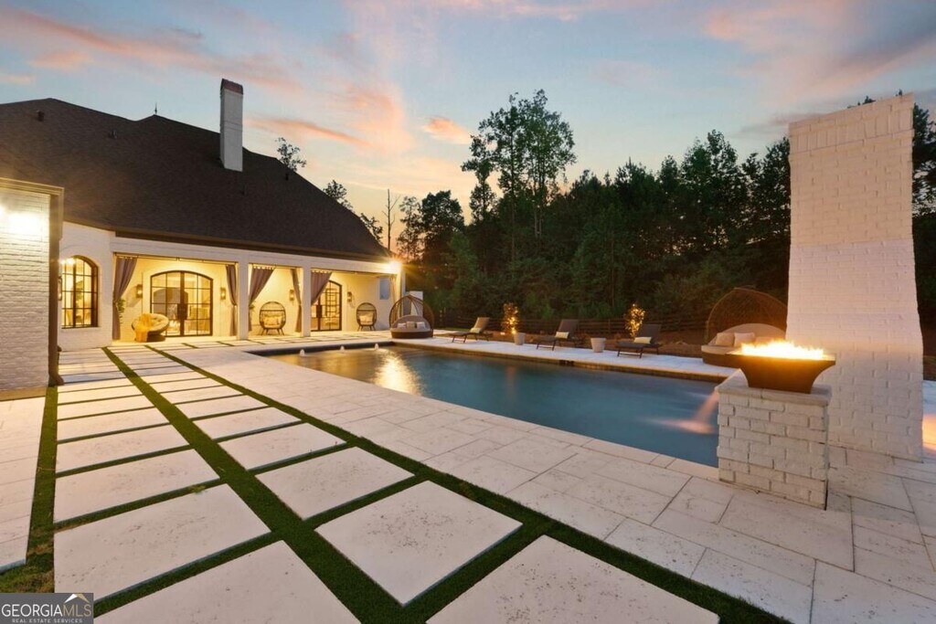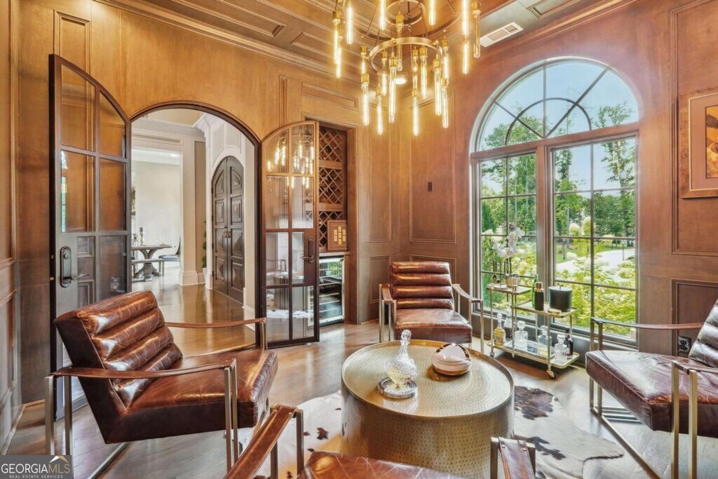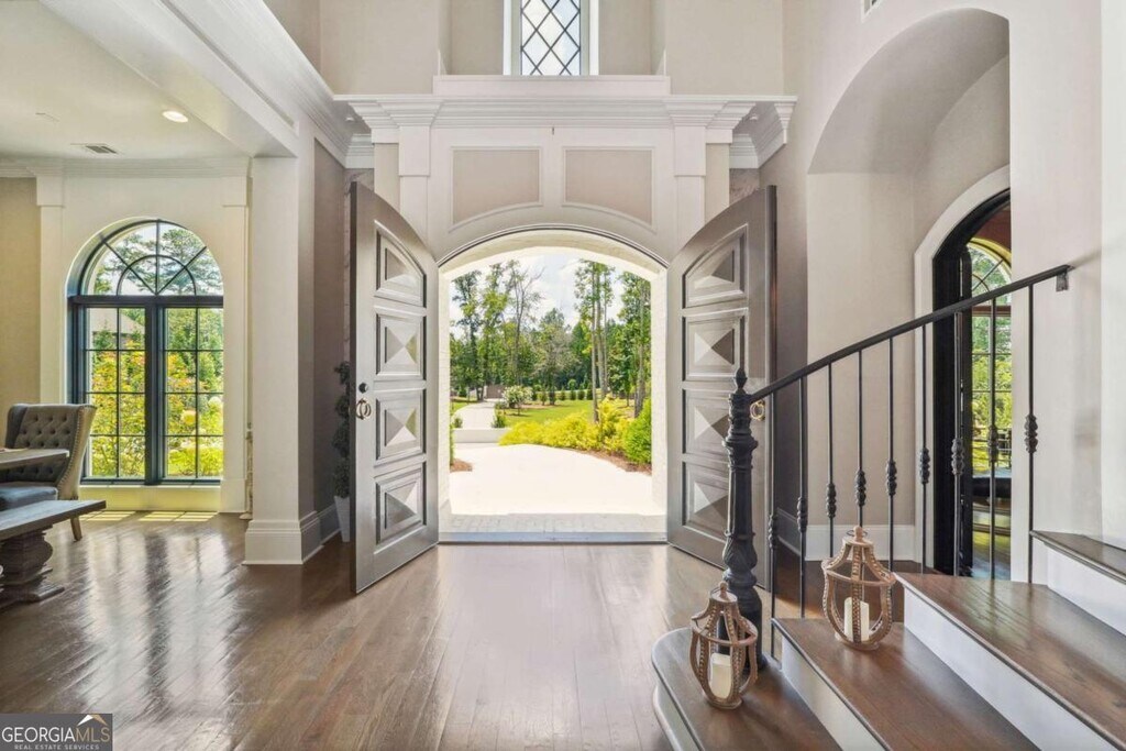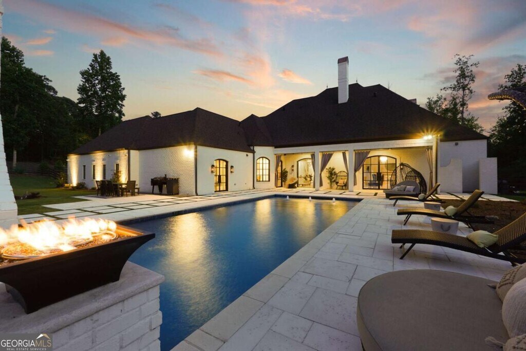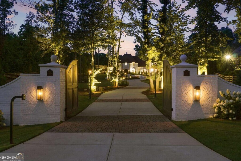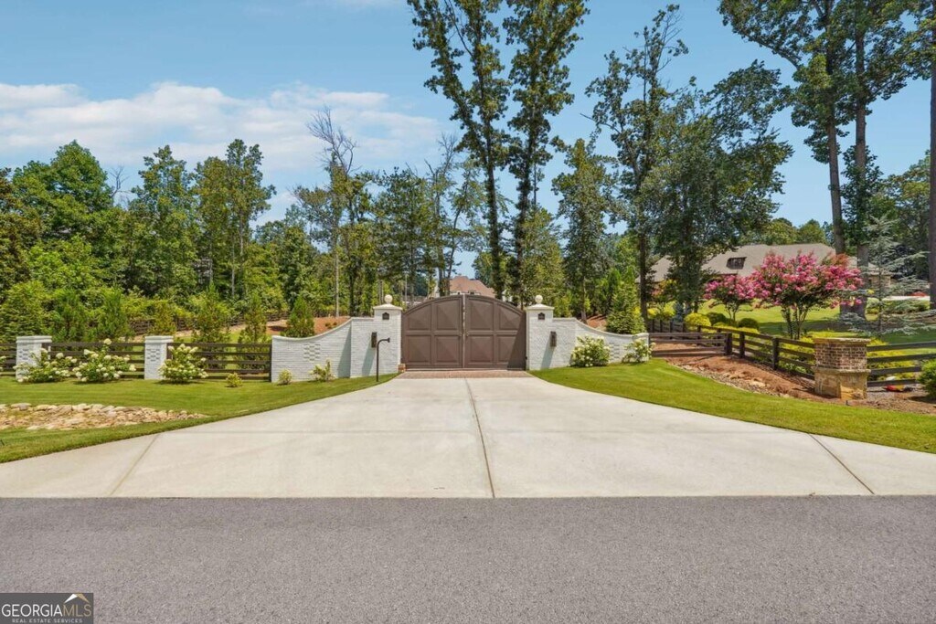 Welcome to a rare offering in luxury real estate-an extraordinary custom-designed residence nestled behind double-entry gates on 2.68 acres of pristine privacy. Located just moments from Lake Lanier, this fully furnished estate redefines refined living with unmatched style, function, and resort-inspired amenities. From the moment you enter the grand foyer, soaring ceilings, walls of glass, and architectural artistry capture your attention. A dramatic formal dining room and richly paneled cigar/library lounge set an elegant tone, while a two-sided fireplace anchors the expansive living room and flows effortlessly into the gourmet chef's kitchen-outfitted with an ILVE Majestic dual-fuel range, quartzite countertops, a sun-soaked breakfast nook, and sprawling island designed for entertaining. The main-level primary suite is a personal retreat featuring a spa-like bath with a steam room, essential oil soaking tub, and dual custom closets. Upstairs, four spacious en-suites impress with bespoke finishes and a gallery-like overlook framed by imported cast iron balusters. A private guest house, connected by a covered porte-cochere, includes a full luxury kitchen, walk-in pantry, and laundry-perfect for long-term guests or multi-generational living. Outdoors, enjoy the spectacular heated pool and spa, complete with waterfall features and fire elements, surrounded by lush landscaping and proximity to a private boat slip (just 0.35 miles away) completes the dream. Also includes a theater room and pet grooming station (not pictured). Offered fully furnished and move-in ready.