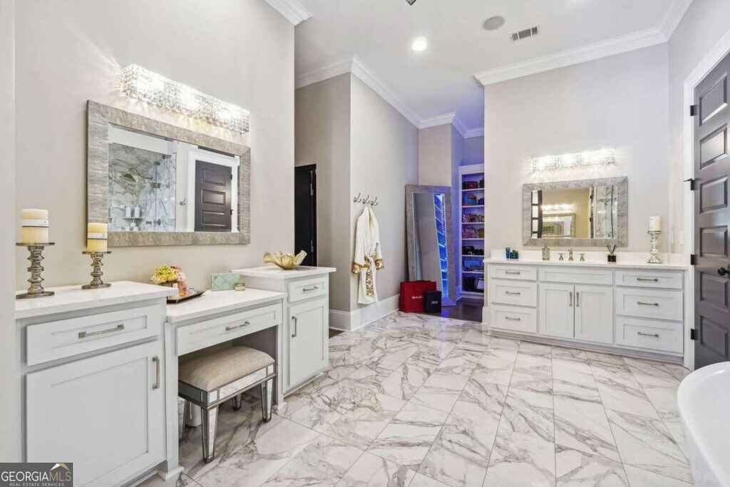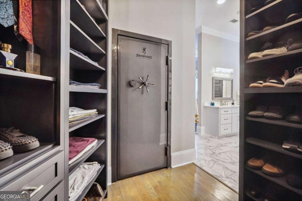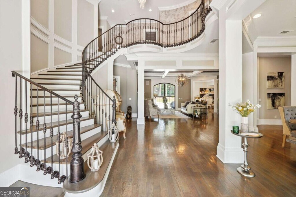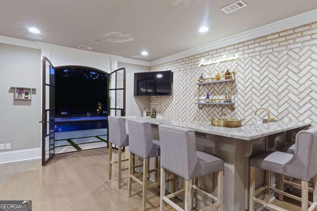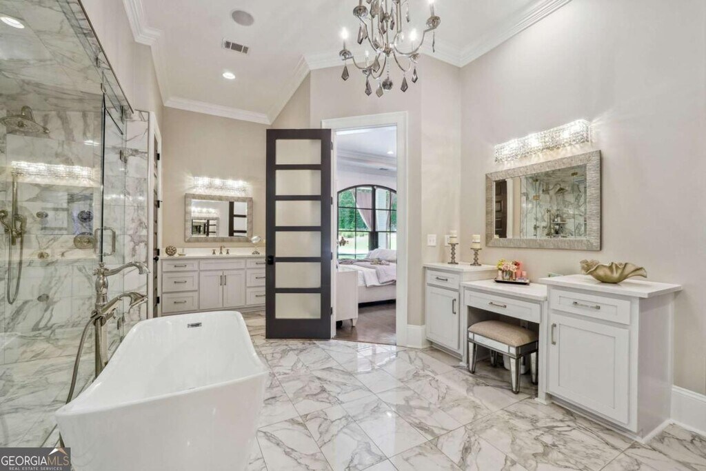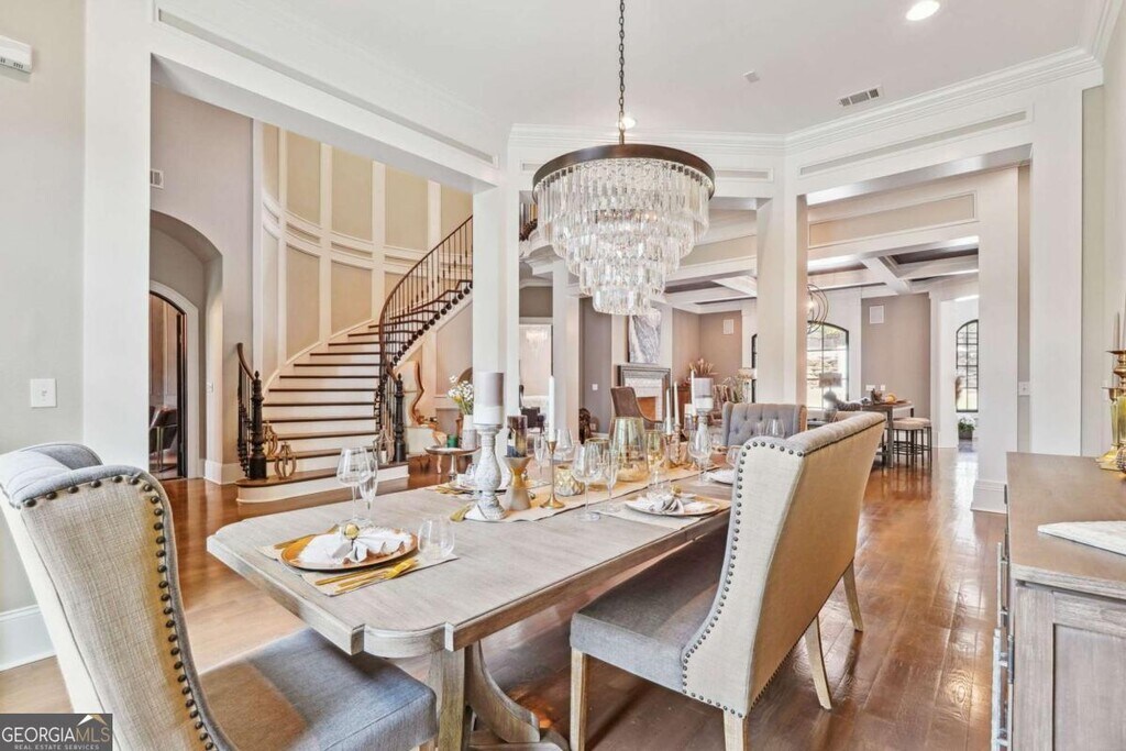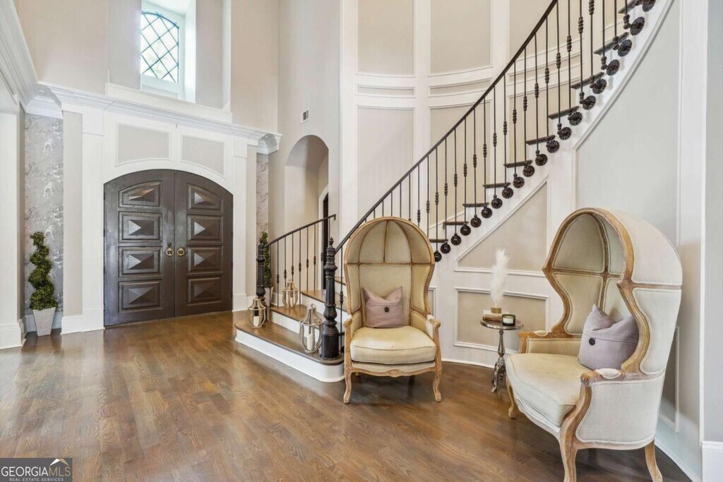Welcome to a rare offering in luxury real estate-an extraordinary custom-designed residence nestled behind double-entry gates on 2.68 acres of pristine privacy. Located just moments from Lake Lanier, this fully furnished estate redefines refined living with unmatched style, function, and resort-inspired amenities. From the moment you enter the grand foyer, soaring ceilings, walls of glass, and architectural artistry capture your attention. A dramatic formal dining room and richly paneled cigar/library lounge set an elegant tone, while a two-sided fireplace anchors the expansive living room and flows effortlessly into the gourmet chef's kitchen-outfitted with an ILVE Majestic dual-fuel range, quartzite countertops, a sun-soaked breakfast nook, and sprawling island designed for entertaining. The main-level primary suite is a personal retreat featuring a spa-like bath with a steam room, essential oil soaking tub, and dual custom closets. Upstairs, four spacious en-suites impress with bespoke finishes and a gallery-like overlook framed by imported cast iron balusters. A private guest house, connected by a covered porte-cochere, includes a full luxury kitchen, walk-in pantry, and laundry-perfect for long-term guests or multi-generational living. Outdoors, enjoy the spectacular heated pool and spa, complete with waterfall features and fire elements, surrounded by lush landscaping and proximity to a private boat slip (just 0.35 miles away) completes the dream. Also includes a theater room and pet grooming station (not pictured). Offered fully furnished and move-in ready.