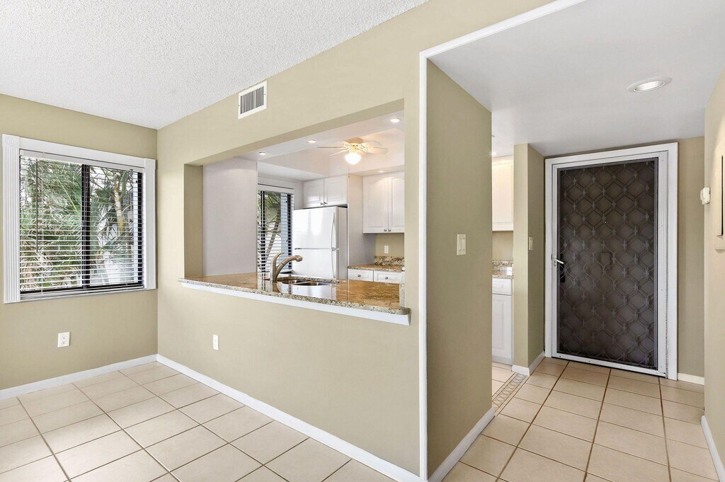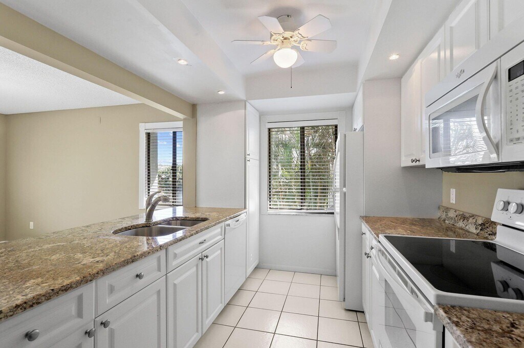 Beautifully updated 2 bedroom, 2 FULL BATH, corner unit in the gated, waterfront community of the Estuary. This charming condo offers a spectacular panoramic view of one of the many lakes in the community from every room of this 2nd story unit! If you love nature, you will love sitting in your large screened-in lanai w/ample storage overlooking the lake. Features include tile in the main areas, granite tops, white cabinets, washer, dryer, new shower 2nd bath, walk-in closet in master bedroom. You are just steps away from one of the TWO community pools & tennis courts & minutes away from the beautiful beaches, Jensen Beach mall, shopping, dining & hospitals. Don't miss your chance to live in this beautiful community!