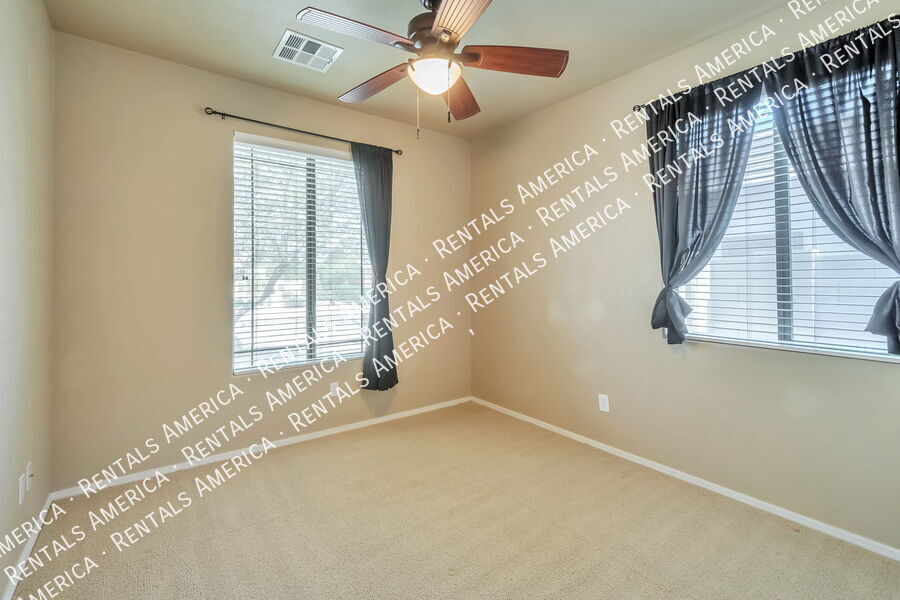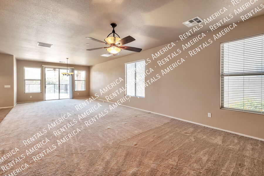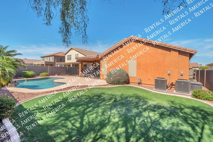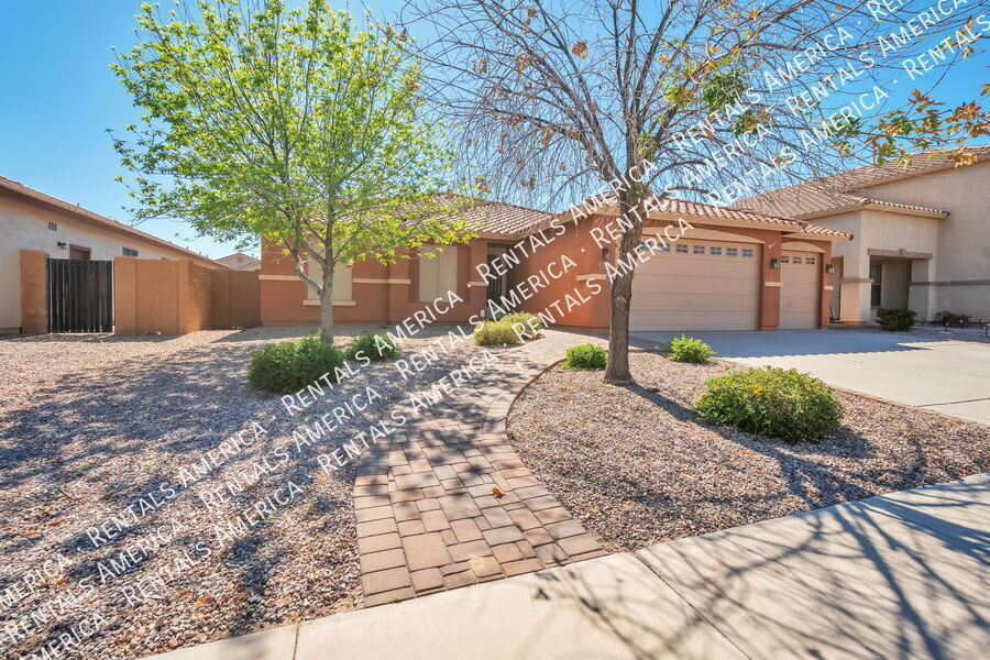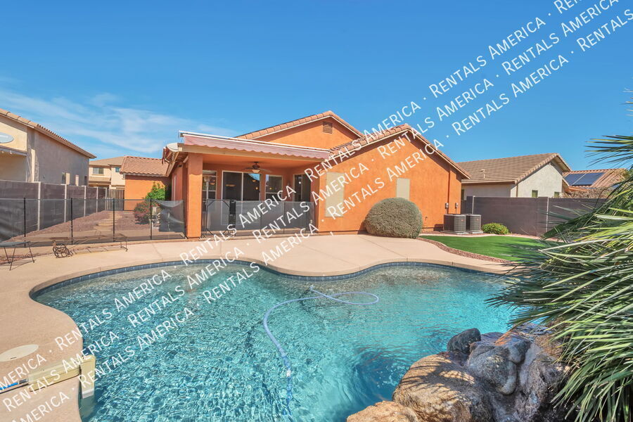 Prime location of a beautiful 4 bedroom, 2 bathroom home available for immediate move in at San Tan Heights community. Additional den or office space available within the primary room. The spacious primary bedroom also has a nice sized wardrobe room, separate shower and tub ensuite, plus a sliding glass door access to the backyard. L-shaped kitchen, island prep space, all kitchen appliances included, and opens up to dining area and living room, perfect for any gathering. Paver and covered patio also offers two large retractable awnings. Fenced in backyard pool and generous patio space. Regular yard landscaping and pool maintenance included. Solar panels saves on your utility bill. Steps away from one of the parks and close to local eateries, groceries, gas and a school. There is also a community pool and gym and playgrounds. Don't wait, tour and apply today! One Time Admin Fee: $300, Pet Deposit: $300/pet (if applicable), Service Fee: 2%. $39/month Resident Benefits Package, Helping Heroes Discount Available! Carpet Cats Allowed Ceramic Tile Community Pool Disposal Dogs Allowed Dryer Garage Pets Allowed Washer
