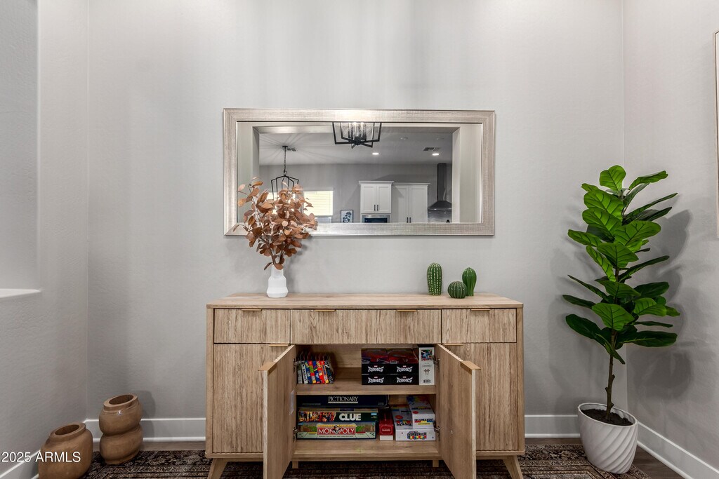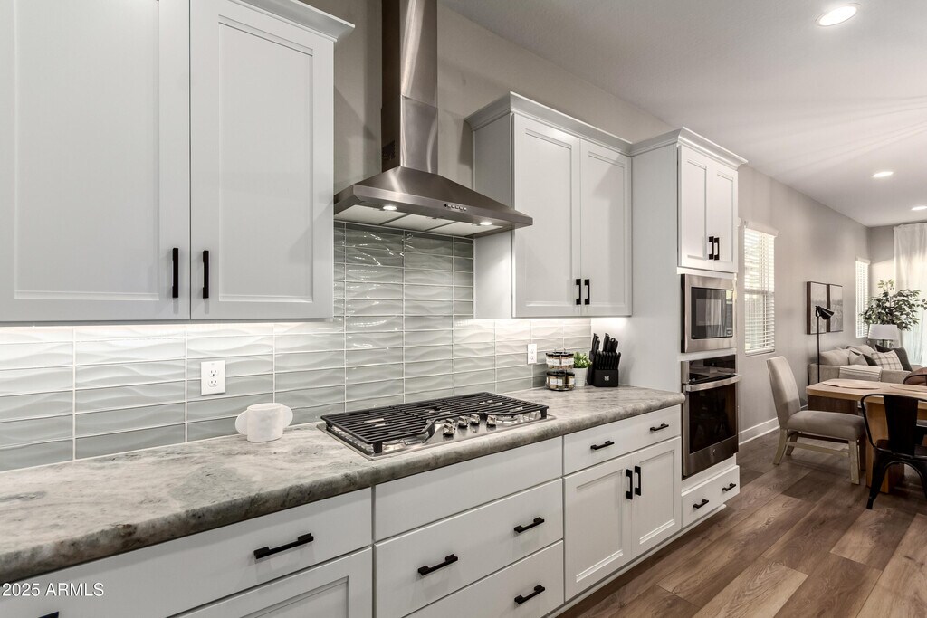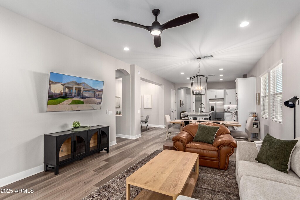 The heart of this home is the well appointed gourmet kitchen with white shaker cabinets,satin granite counters & designer backsplash,stainless steel appliances,gas cooktop & refrigerator. Features include luxury vinyl plank flooring,10'h ceilings,12'w glass atrium doors at the family room. Split floor plan for privacy. Owner's suite features huge walk-in shower,double vanities,& an oversized walk-in closet. Luxury vinyl plank flooring main areas & carpet in the bedrooms. 3 bedrooms,2baths,den plus bonus room/office. Sleeps 7. Fully landscaped front & back. Ceiling fans. Washer & dryer. EV outlet in 2 car garage. Enjoy full access to all Barney Farms amenities. Located within Barney Farms,a beautifully masterplanned community like non-other. Featuring a deep-water lake for catch & release fishing,kayaking,and canoeing. Acres of open space,miles of walking trails,a state of the art aquatic center with 4 pools; splash pad,leisure pool,sport pool and lap pool. Clubhouse,themed playgrounds,four lighted pickle ball courts,basketball,volleyball,cornhole,bocce ball,and ramadas. SLEEPING ARRANGEMENTS - Bedroom 1: 1 king bed - Bedroom 2: 1 queen bed - Bedroom 3: 1 bunk with 2 twins,plus 1 twin trundle bed LOCAL AMENITIES -- Golfing nearby (within 4 miles) - .5 miles to Queen Creek Family Frontier Park/Rec & Aquatic Center - .5 miles to groceries,dining,EoS Fitness - 3 miles to Costco - 3 miles to Queen Creek Marketplace - 3.5 miles to Queen Creek Olive Mill - 4 miles to Schnepf Farm - 5.5 miles to Arizona Athletics Ground - 7 miles to Pecan Lake Entertainment & Slick City Action Park - 8 miles to Mesa Gateway Airport & miles to Phoenix Sky Harbor International Airport - 10 miles to San Tan Mountain Regional Park - 14 miles to San Tan Village Mall shopping - 22 miles to Salt River tubing & paddle boarding,Usery Mountain Regional Park - 39 miles to downtown Phoenix; concert venues,shipping,dining,bars,museums,casinos INDOOR LIVING - Smart TVs,comfortable seating throughout - Dining Table with chairs,Breakfast Bar with bar stools - Desk and desk chair at front office/bonus room - Board games,books & puzzles OUTDOOR LIVING - Covered Patio - BBQ gas grill - Outdoor seating - Backyard games KITCHEN - Refrigerator/ice maker,gas cooktop,dishwasher,oven,microwave - Drip coffee maker,crockpot,toaster,blender - Dishware,flatware,utensils,knives,cooking essentials,spices,mixing bowls,baking sheets GENERAL - Free WiFi - Central A/C & heating,ceiling fans - Washer,dryer,laundry detergent,iron & ironing board - Towels,linens,hair dryers - Trash bags,paper towels,toilet tissue FAQ - Security cameras and Ring doorbell - Quiet hours (10:00pm - 8:00am) ACCESSIBILITY - Single level home,1 step to enter PARKING - 2 car garage - Driveway (2 vehicles) - EV outlet in garage Electric cap of $250 per month. Gas cap of $75.