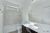 Luxurious single-story home,with a 3-car garage. Just minutes from historic Gruene district,schools,medical,grocery,and the Creekside Shopping Center. Features include: Stainless appliances (gas stove/oven range,dishwasher,refrigerator with ice maker and water dispenser,and built-in microwave) built in security system,and high quality water softener. Oversized kitchen island with breakfast bar,quartz countertops,subway backsplash,walk in pantry,gas