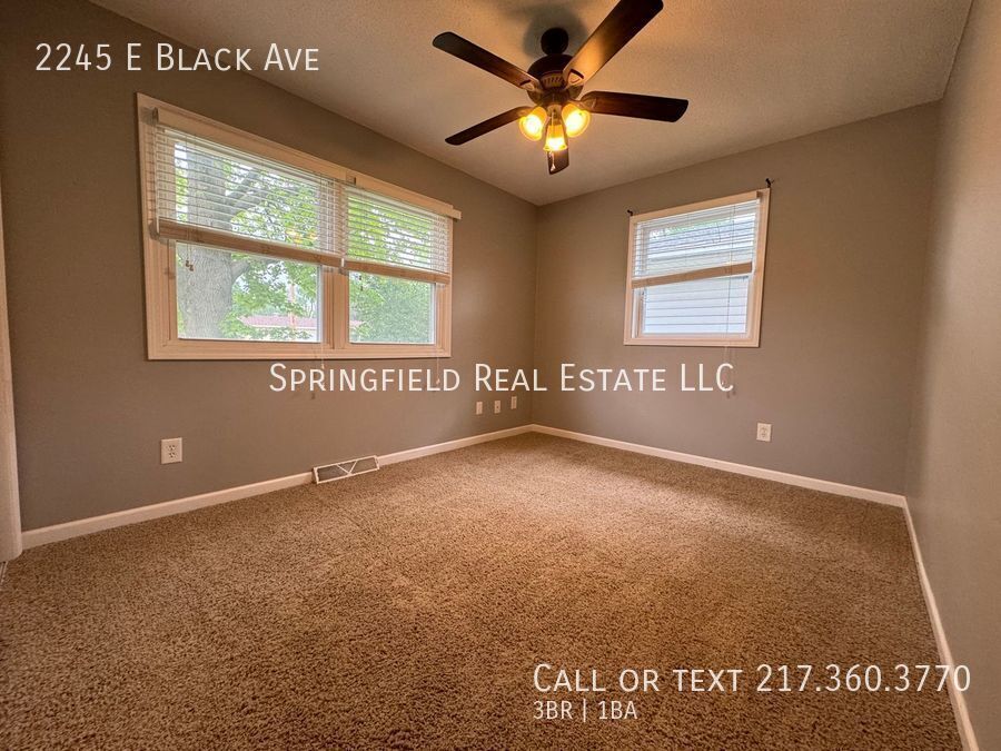 MODERN OASIS ALERT! 2245 E Black Ave Springfield, IL 62702 $1,450/month | 3 Bedrooms | 1 Bath | 1,014 sq ft Step into pure comfort and style with this 3 Bed / 1 Bath home that’s as stunning as it is inviting! What You’ll Love: - Sleek hardwood floors + plush carpeted bedrooms = total luxury underfoot - NEW windows fill your home with natural light - Ceiling fans keep things cool and breezy - Private fenced yard — perfect for pets, play, or relaxing weekends - Modern kitchen with refrigerator, range/stove, and dishwasher - Pet Friendly: Up to 3 cats/dogs (no deposit, pet rent varies) - Utilities not included - Section 8 Accepted Available Now – Move-in ready! - Schedule a viewing: Security Deposit: $1,450.00. Applications: Only accepted through our website or at our office. We do not accept Zillow applications, paper applications, or scanned/emailed applications. Application fee is $40 per person 18 or older. Basic Requirements: - Income: $4,350.00 / month minimum required - Credit: Average score = 620+ (619-560 can be approved, conditions apply) - Evictions: None in the last 3 years. Additional deposit for evictions past 3 years. - Criminal: No convictions of property damage, injury of a person, or drug dealing in last 3 years for misdemeanor charges and 7 years for felony charges. - FULL LIST OF REQUIREMENTS, go to: Apply online through Springfield Real Estate LLC’s site or schedule your private showing here : Questions? Call/Text Modern comfort meets cozy charm — and it’s waiting for YOU! Disclaimer: All information deemed accurate, but not guaranteed. None
