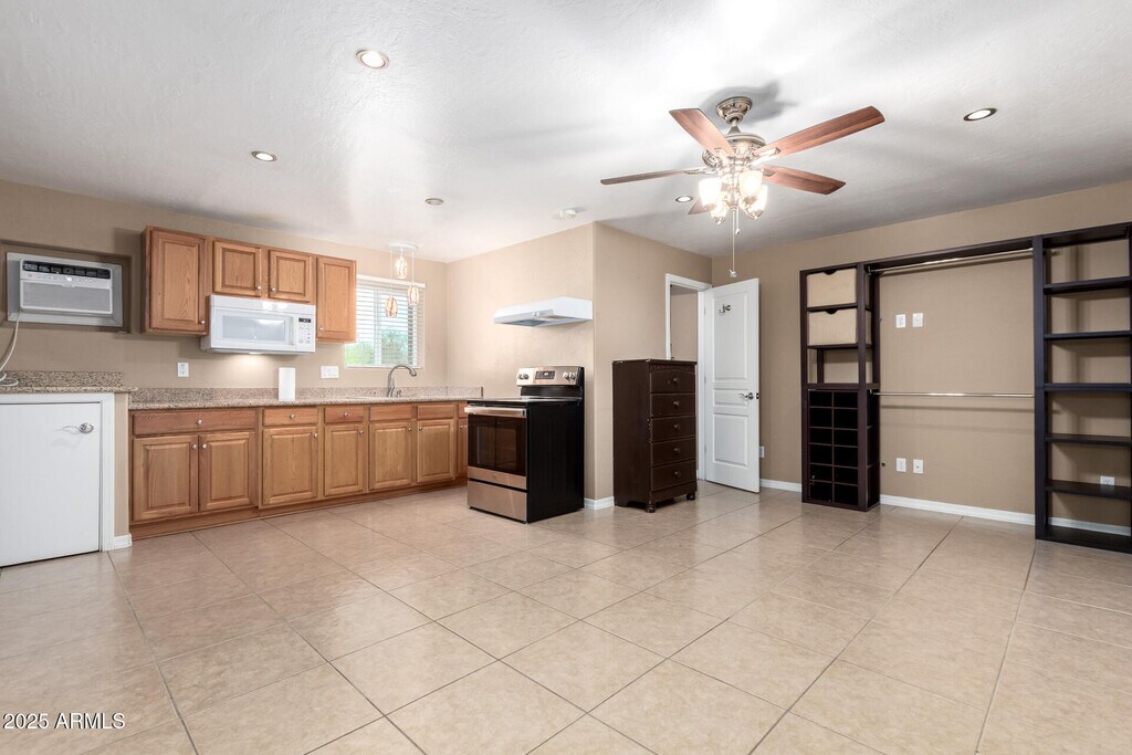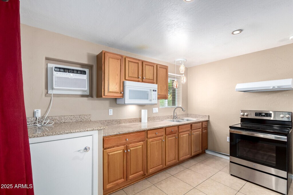 Discover this charming studio-style home nestled on a desirable corner lot,with a fantastic location near restaurants and shopping! A lovely covered patio invites you to the bright interior,featuring a practical open floor plan with tile flooring,ample natural light,and soft paint. The well-appointed culinary space boasts plentiful storage cabinetry,spacious granite counters,and built-in appliances. Utilities included! Enjoy peaceful evenings in the backyard. Detached private laundry room and storage area. You don't want to miss this gem! Check it out before it's gone!