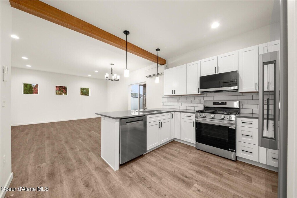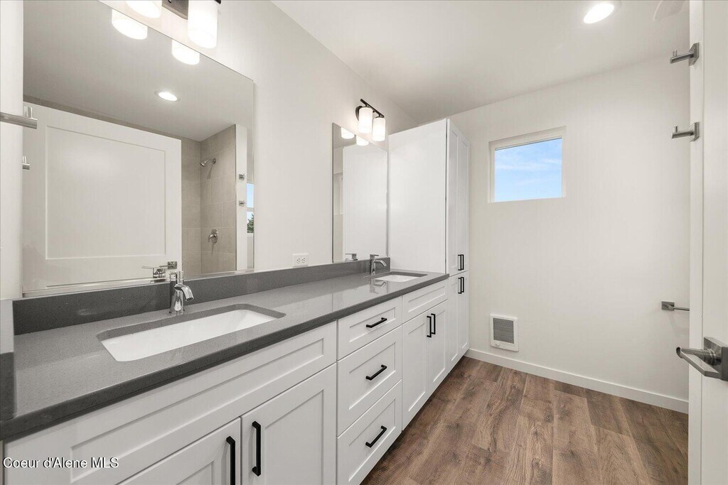 This brand new 3-bedroom, 3-bath home in the heart of Post Falls is the perfect mix of comfort, style, and convenience. Inside, you'll find 1,366 square feet of open, inviting space with luxury vinyl plank flooring throughout the downstairs and the hallway upstairs. The upstairs bedrooms offer comfort with carpeted floors and each room boasts its own mini-split to keep comfort levels just right all year long. The kitchen has a clean, modern feel with shaker cabinets and quartz countertops. These quartz countertops can also be found in both bathrooms. The master suite gives you a nice private retreat featuring a sleek tiled shower and plenty of cabinet storage. Outside, the front yard has sod with sprinklers, making lawn maintenance minimal. There is also a common area across from the home, giving you more outdoor space to hang out. Plus, you're a one minute drive (or ten minute walk) from Syringa Park, which is one of the better neighborhood parks in Post Falls!