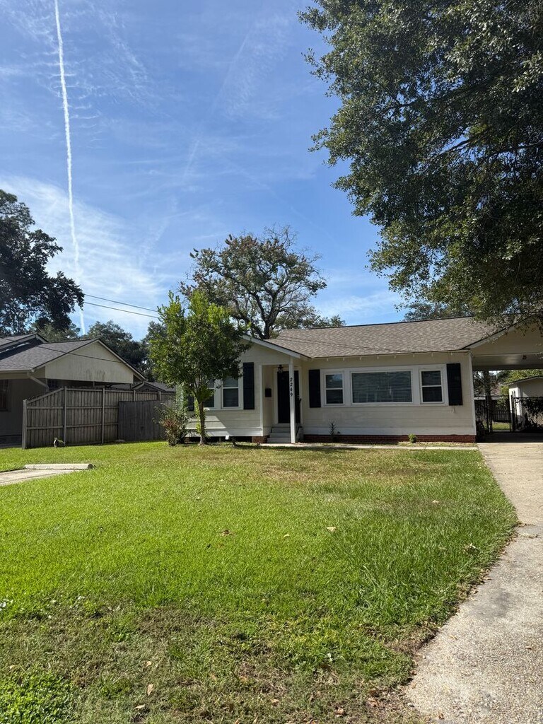 Welcome to the Updated Cottage Home in the Southdowns area of Baton Rouge, LA. This move-in ready gem boasts 4 spacious bedrooms and 2 full bathrooms. The home is beautifully appointed with wood and ceramic flooring throughout, adding a touch of elegance and durability. The kitchen is a chef's dream, equipped with a stainless dishwasher, microwave, and refrigerator, along with a sleek black glass stove/oven. The quartz countertops and custom cabinetry add a modern touch to the space. The home also features ceiling fans for added comfort, and inside laundry connections for convenience. The fenced yard provides a private outdoor space, perfect for entertaining or simply enjoying the Louisiana weather. An outside storage space and a single car carport add to the practicality of this charming home. Experience the perfect blend of comfort and style in this Updated Cottage Home.