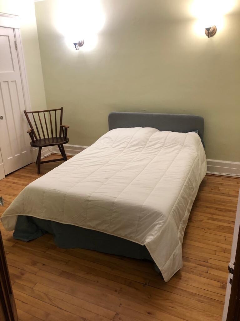 The home is quite large with in unit washer and dryer, full gas cooking appliances, and AC. On top of living and dining room area areas, there is a work out/meditation room and a balcony that gets lots of Sun. The apartment is located a 10 minute walk from Vendome station with easy access to biking paths and Hwy 20. The room comes furnished with a queen size bed, table, chair, dresser and shelving or can be unfurnished. Utilities average around $90/month with winter months being a bit more pricy with heating costs.