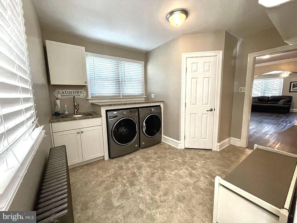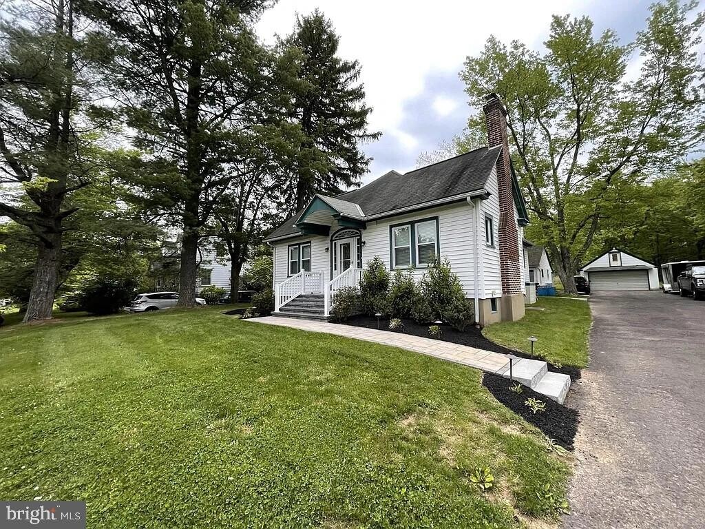 Welcome home to this beautifully updated modified Cape Cod featuring a 2-car garage and classic charm throughout. This spacious home offers 4 bedrooms and 2.5 baths, including a desirable first-floor primary suite with private bath and heated floors. The main level features a renovated mudroom and laundry area with Whirlpool washer/dryer, utility sink, and granite counters. The updated kitchen offers stainless steel appliances, gas cooking, granite countertops, ample prep space, and a bright breakfast nook. The living room features a gas insert fireplace and large picture windows creating a warm and inviting space. Upstairs includes three additional bedrooms and a fully updated hall bath with double vanity and heated floors. Dual-zone radiator heat and central air provide year-round comfort. The large dry basement offers excellent storage and walkout access to a paver patio. The extended driveway provides plenty of parking and leads to the 2-car garage with remote opener. Conveniently located just minutes from SEPTA Colmar and Fortuna stations, shopping, dining, and major routes, all on a beautiful wooded lot. Owner pays water, sewer, trash, and exterior maintenance.